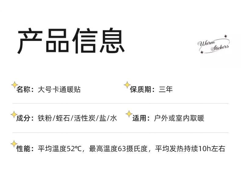 1. Japanese large size and kangaroo warm stickers are 28 grams per piece, 12*9 cm in size, with heating for 5-6 hours.