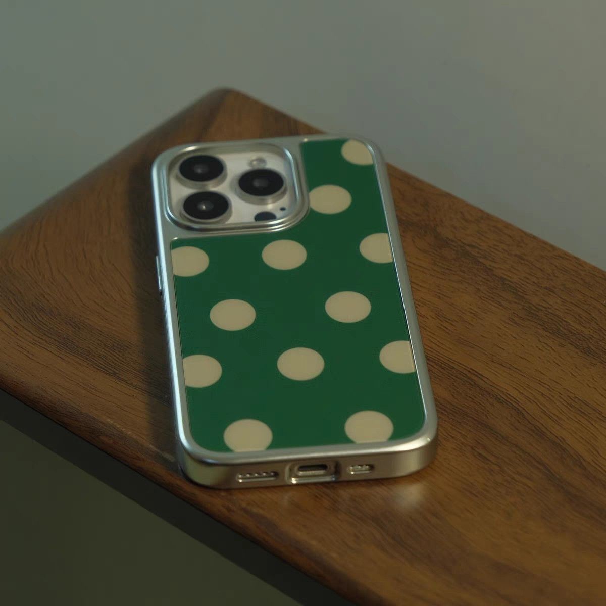 New model green base with polka dots suitable for Apple 16, high-grade electroplated 15promax mirror-like Korean style girl 14 mobile phone shell 13