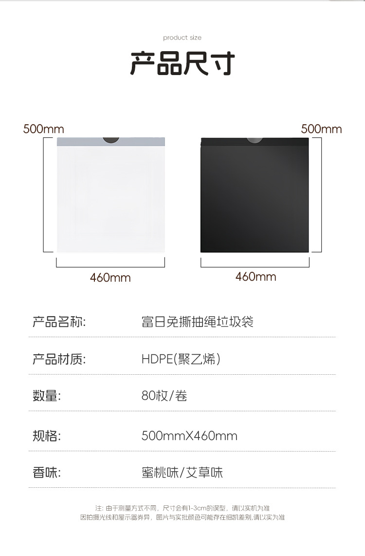 (peach flavor)(80 pieces) (black) thickened tear-free drawstring garbage bag