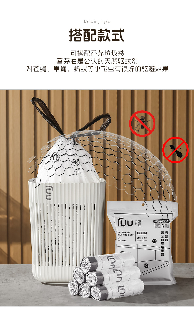 (upgraded lemongrass)(80 pieces) (white) drawstring garbage bag
