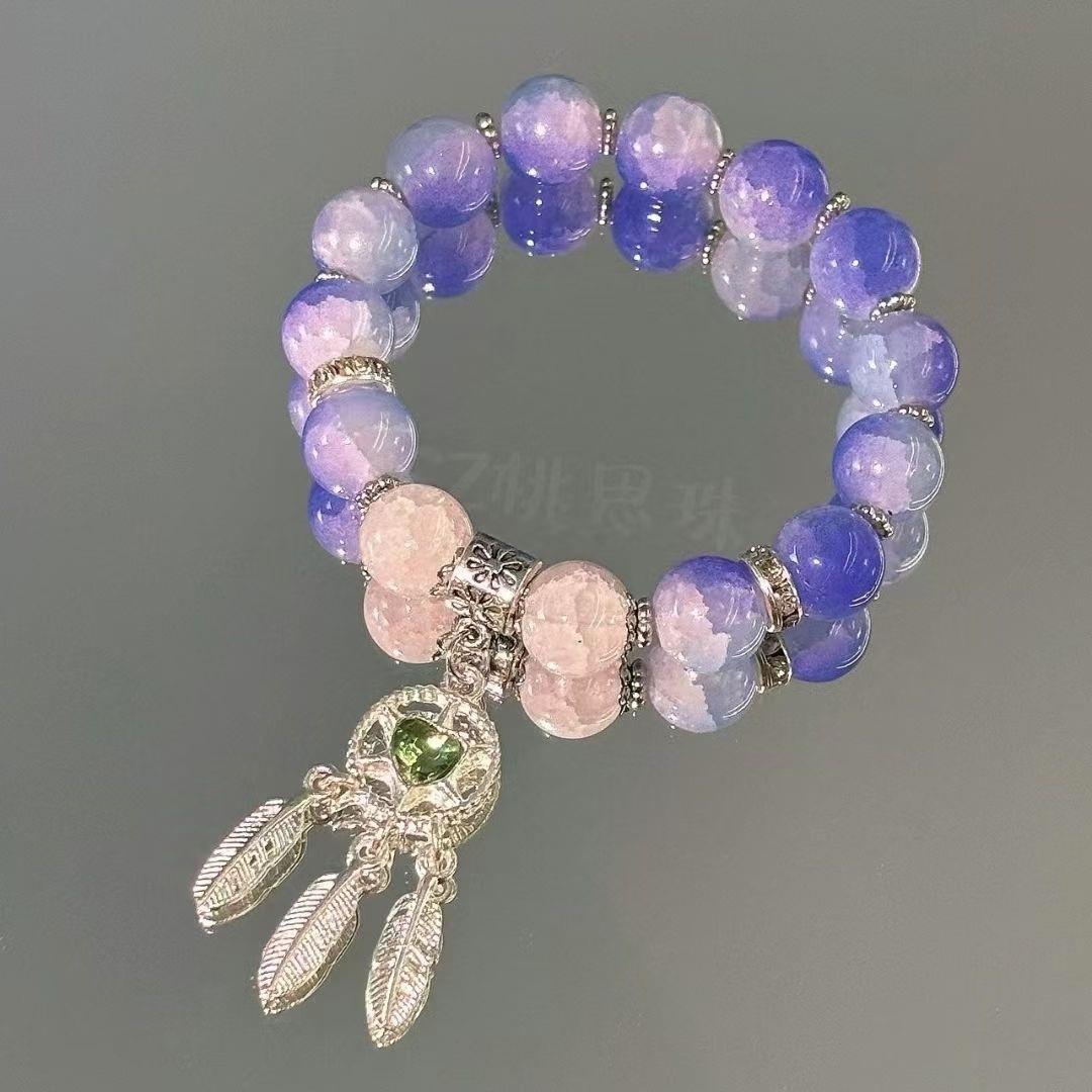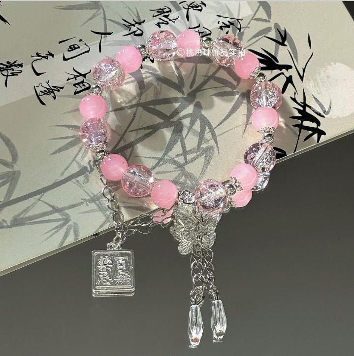 pink beads butterfly bracelet