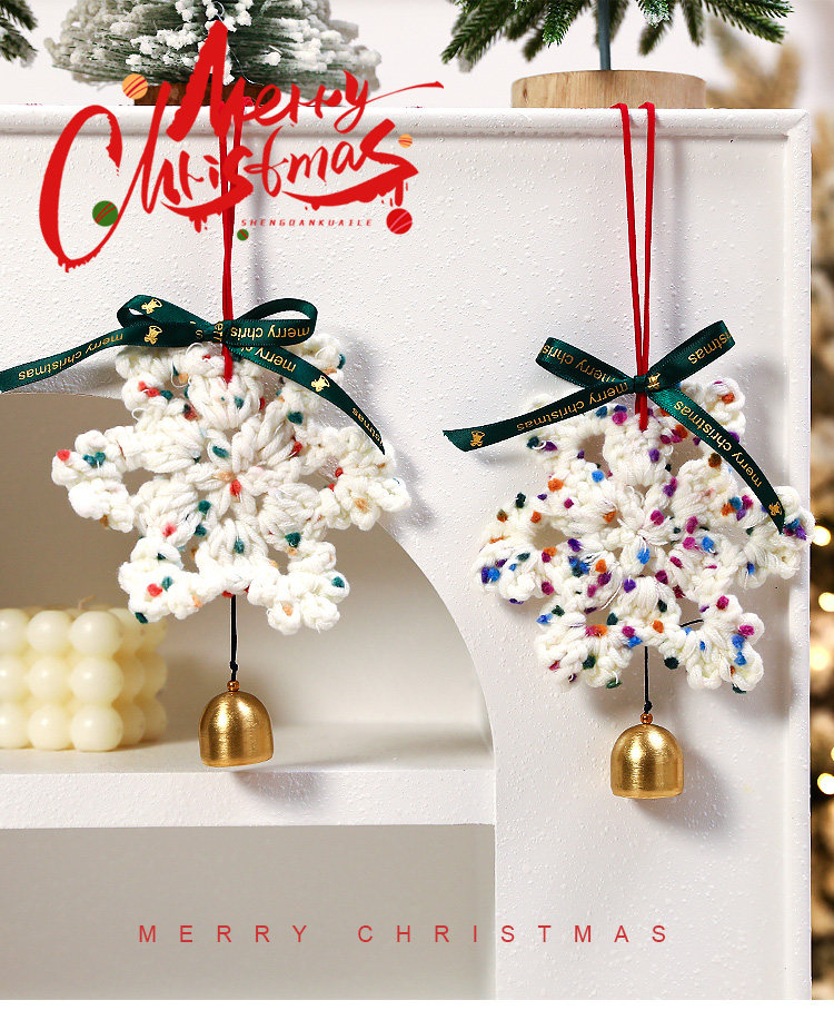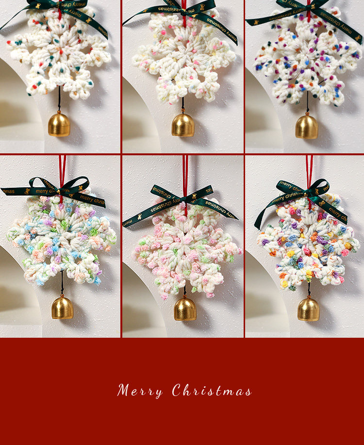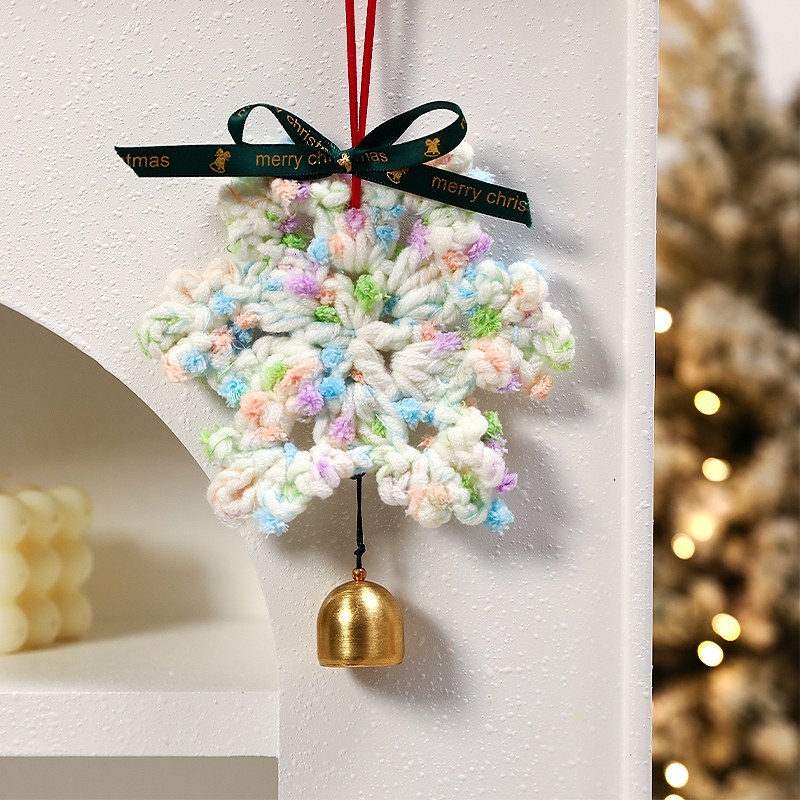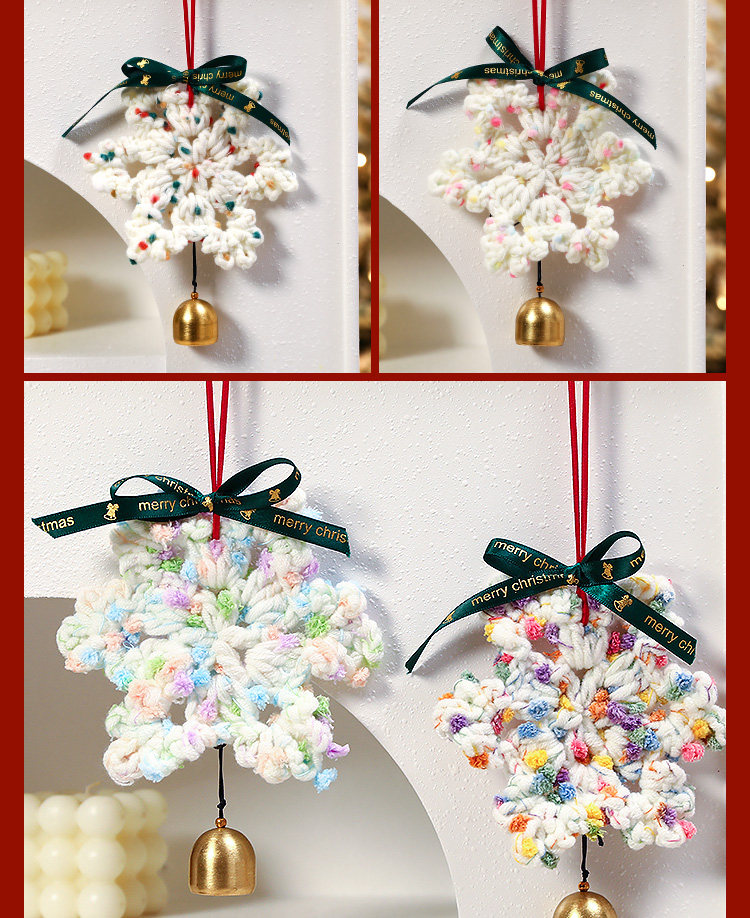 wool snowflake pendant (orange green + baby pink + blue purple + olive green + green pink + flower purple)