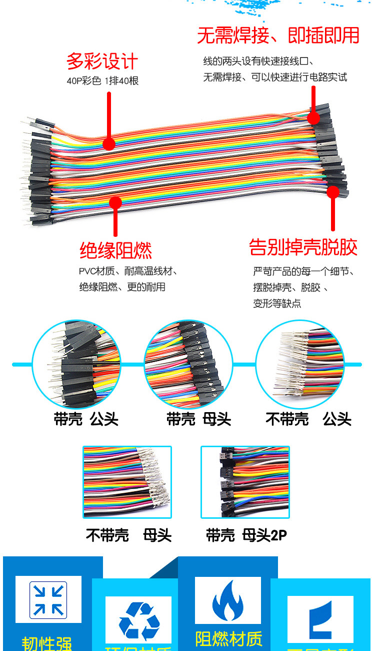 | [cost-effective] dupont line 40cm female to female + male to female + public-to-public 120 pieces in total | CN¥ 18.56 | 67149 piece available |