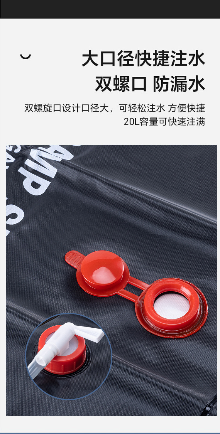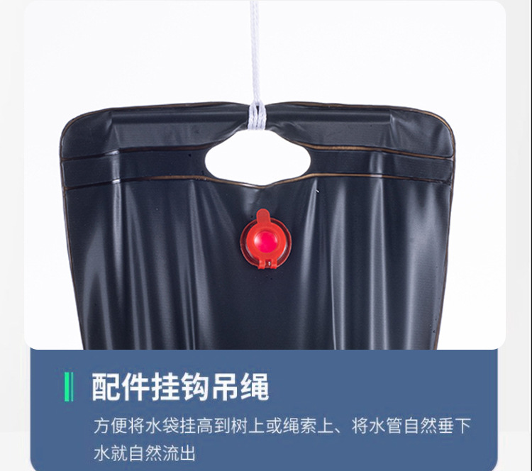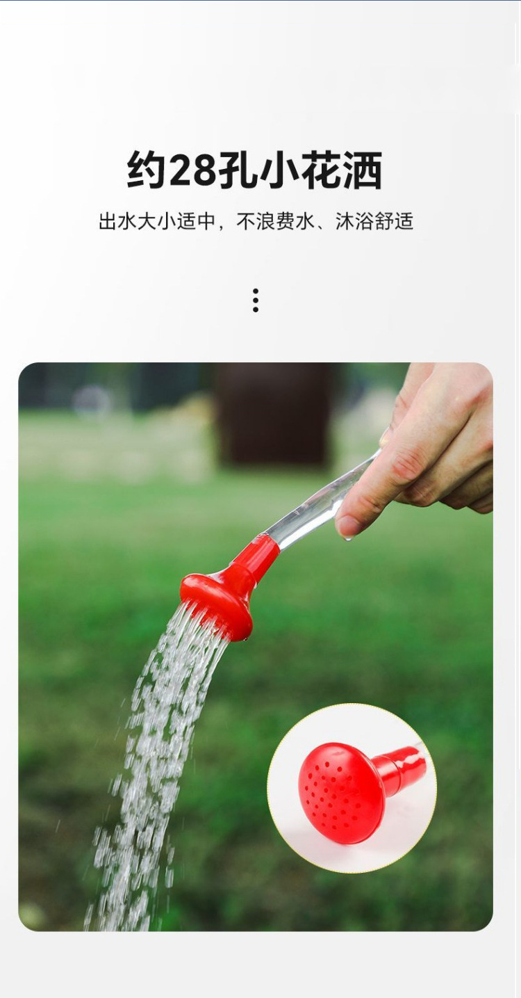 Product accessories: hanging rope hook, white transparent hose, red shower head, switch, black hard pipe.