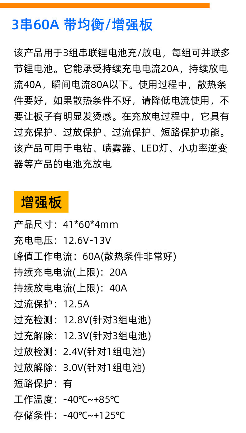 3 strings 60a protection board enhanced version