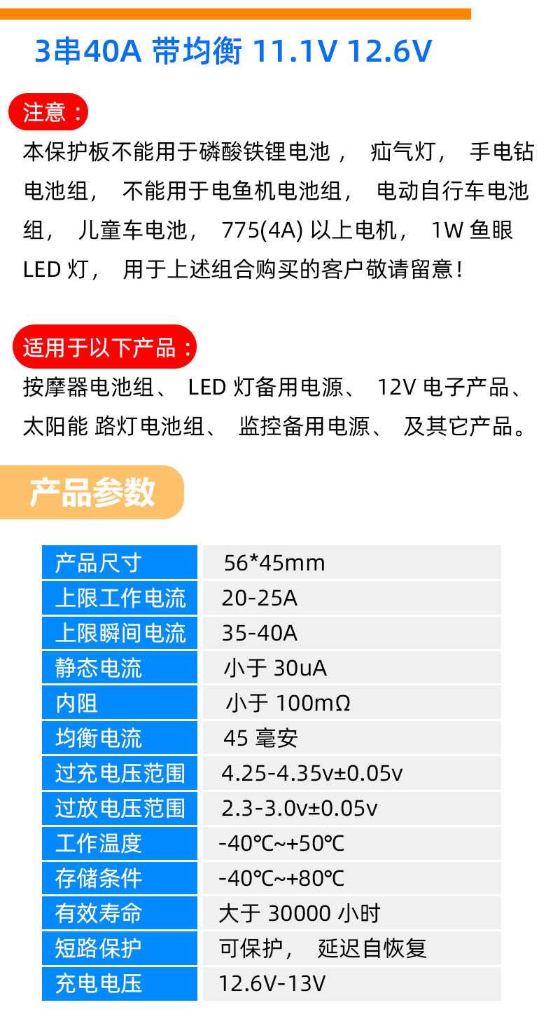 3 strings 40a protection board enhanced version