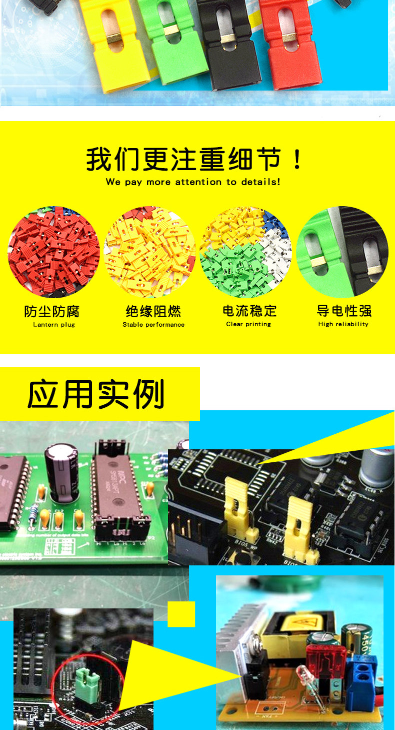 | long handle jumper cap spacing 2.54mm yellow (50 pcs) | CN¥ 3.95 | 60768 piece available |