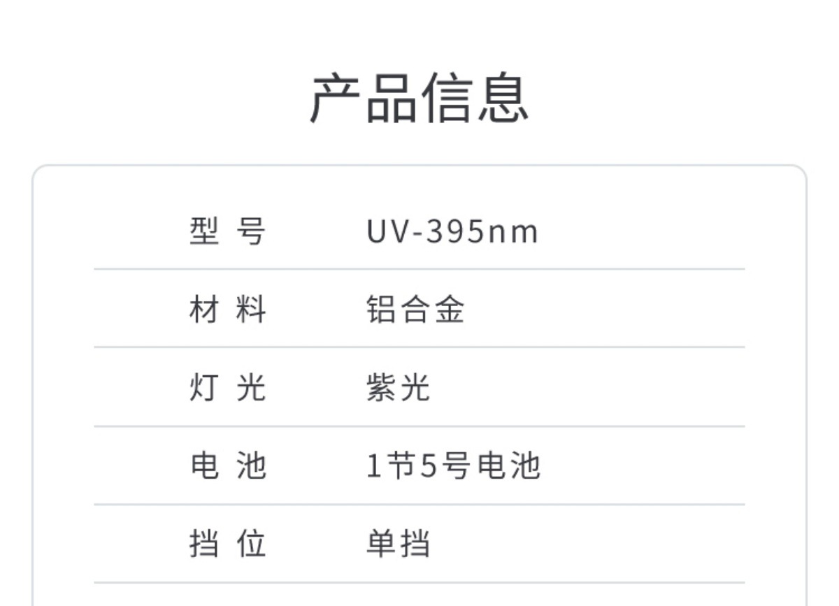 [uv395 purple light] +2 no. 5 batteries 0-5w