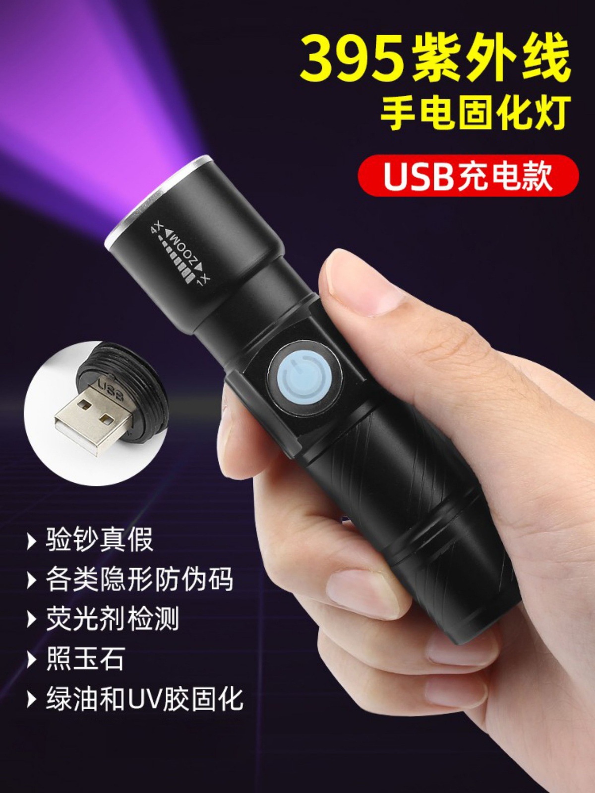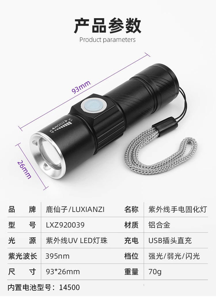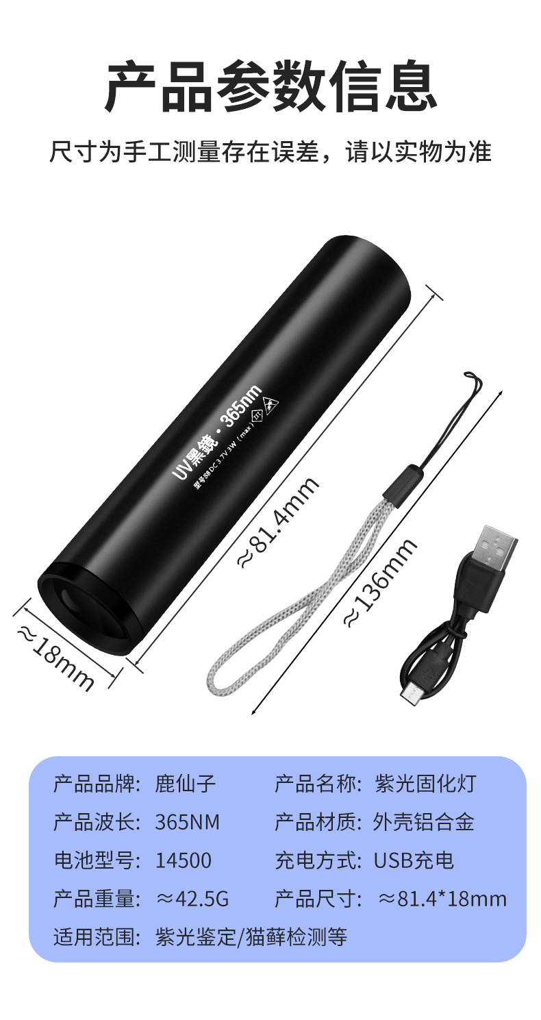 usb charging [three-speed adjustable] wavelength 395nm0-5w