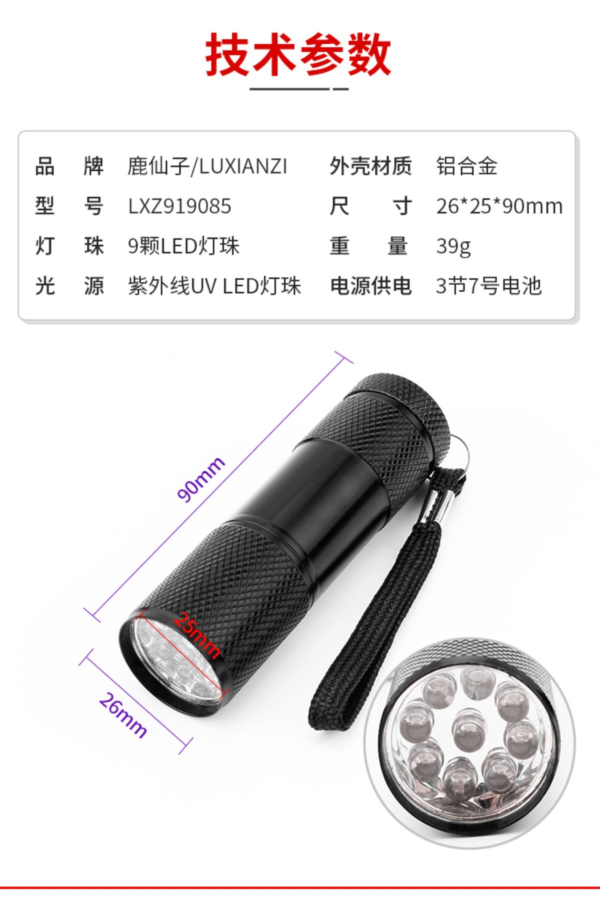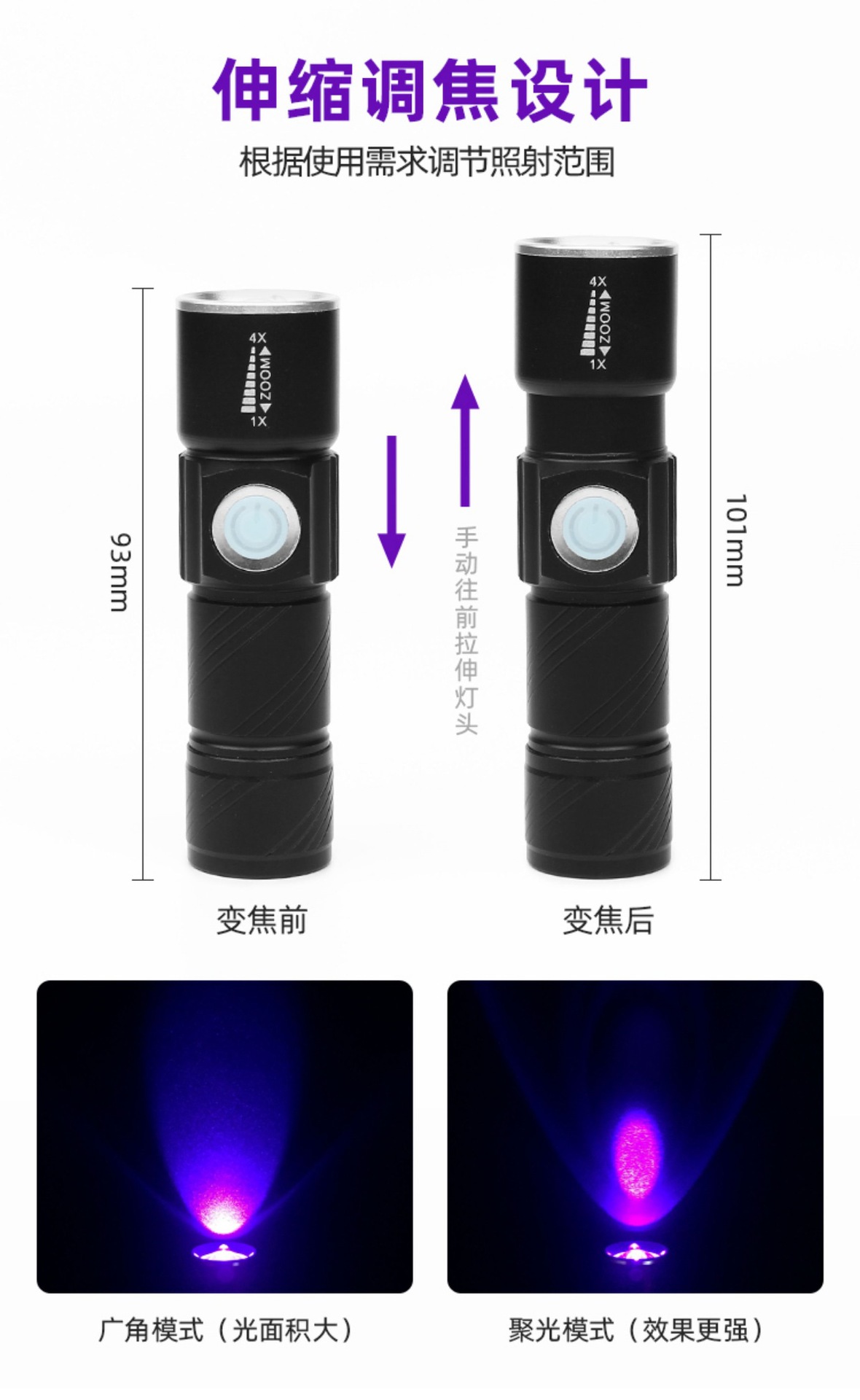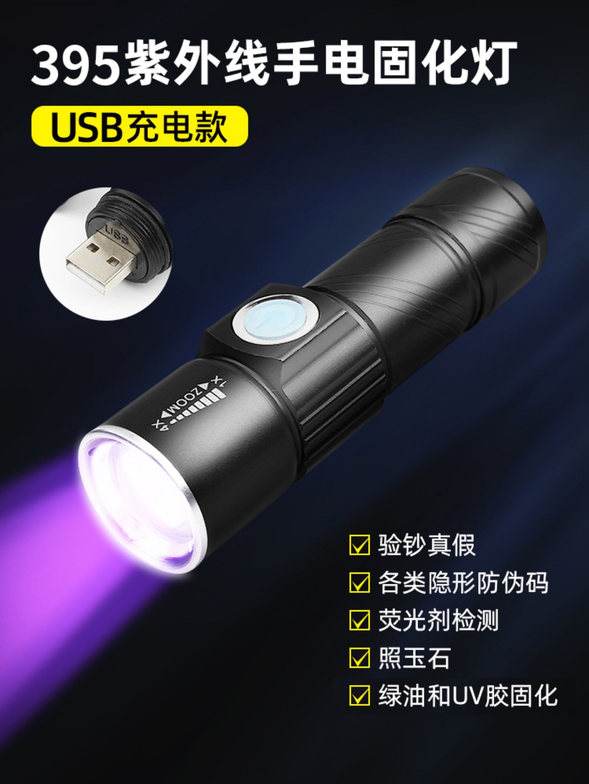 usb charging [three-speed adjustable] wavelength 395nm0-5w