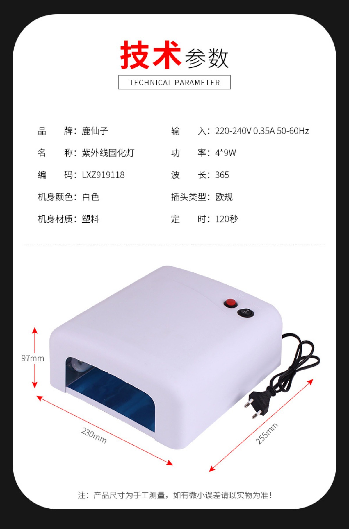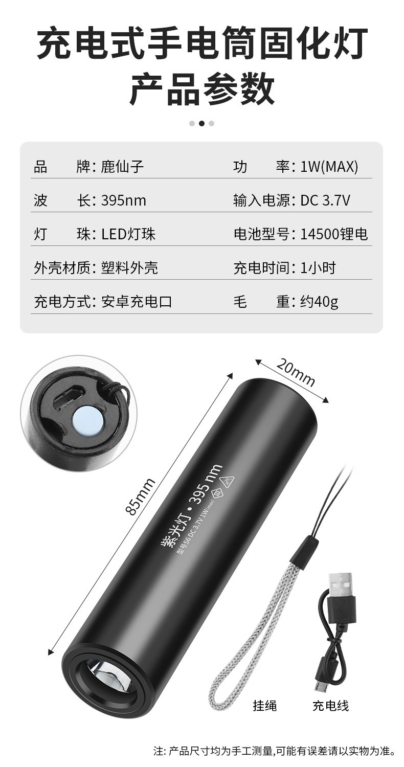 [usb charging] s8 curing light wavelength 365nm (with black mirror filter) 0-5w