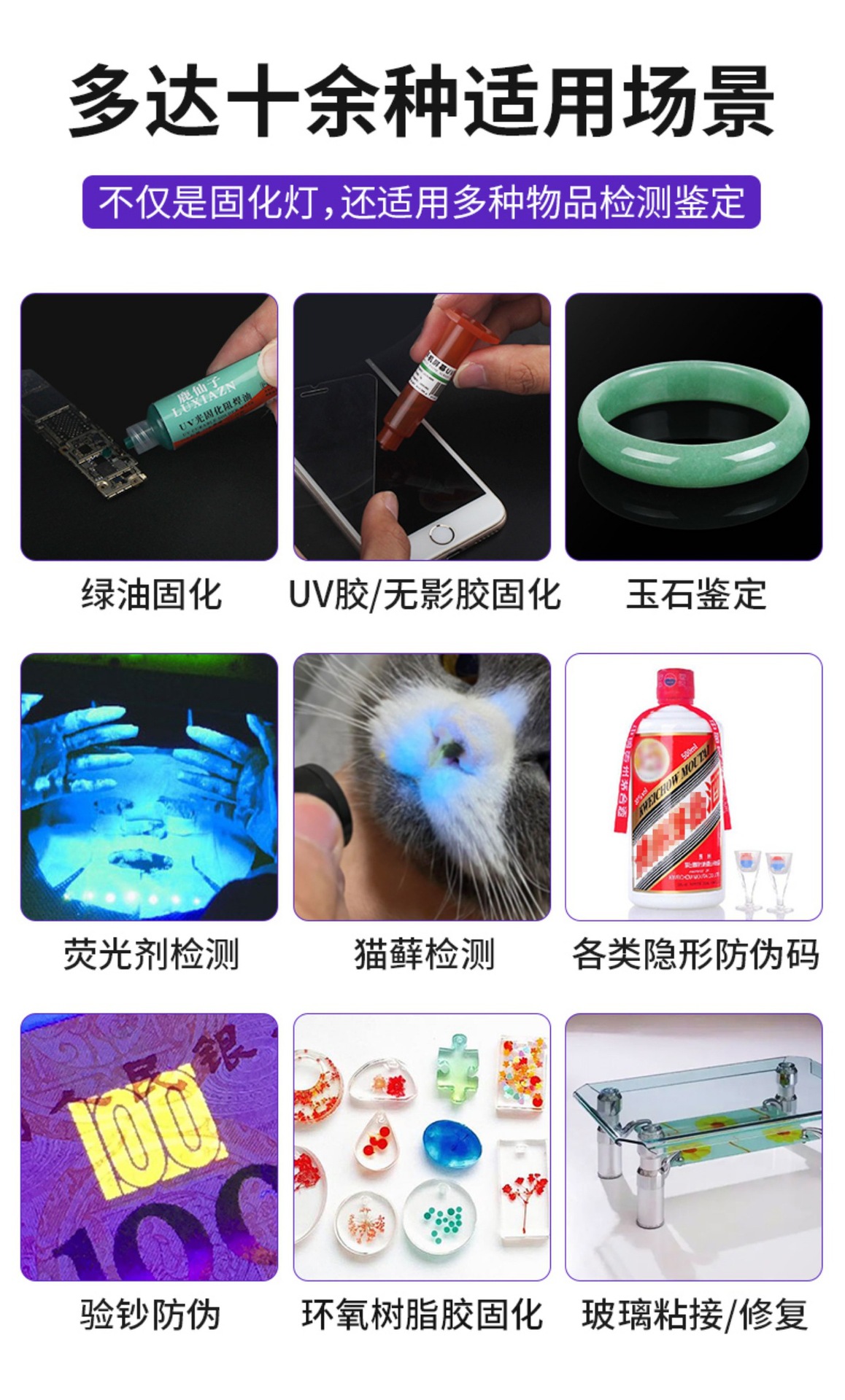 uv395 [white and yellow purple three light sources] with fixed charger 0-5w