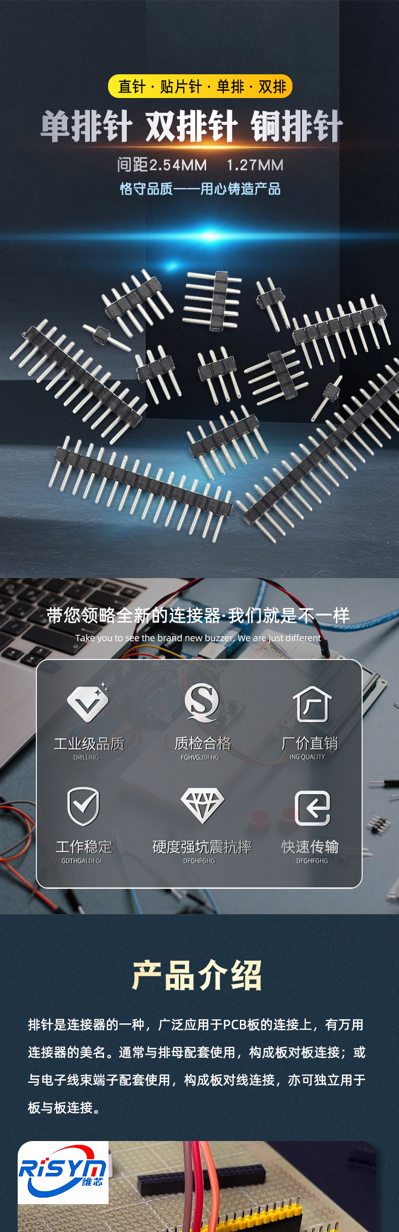 | 1*10p straight needle gold plated single row pin 2.54mm(10 pieces) | CN¥ 2.54 | 61298 piece available |