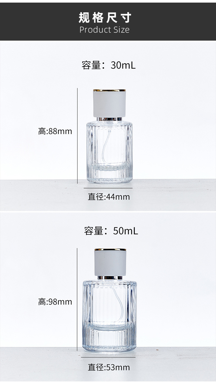 50ml; naked bottle + nozzle + gold top cover (black/white); glass