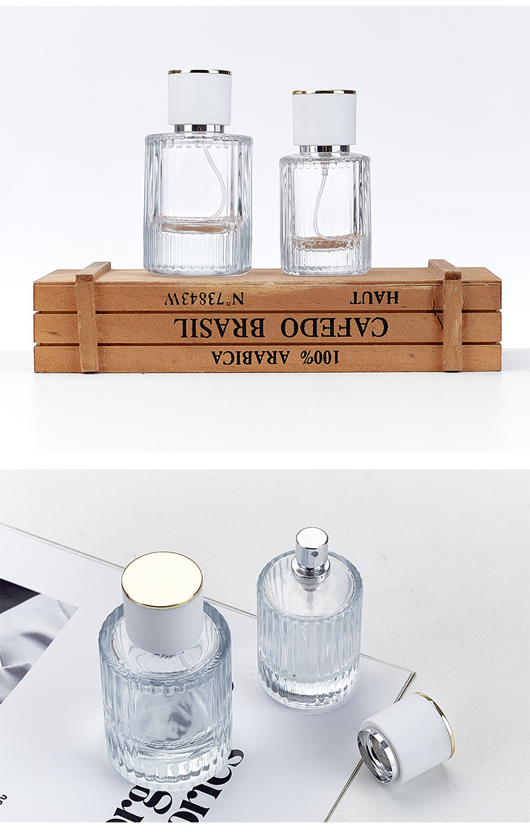 30ml; naked bottle + nozzle + gold top cover (black/white); glass