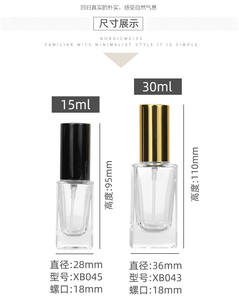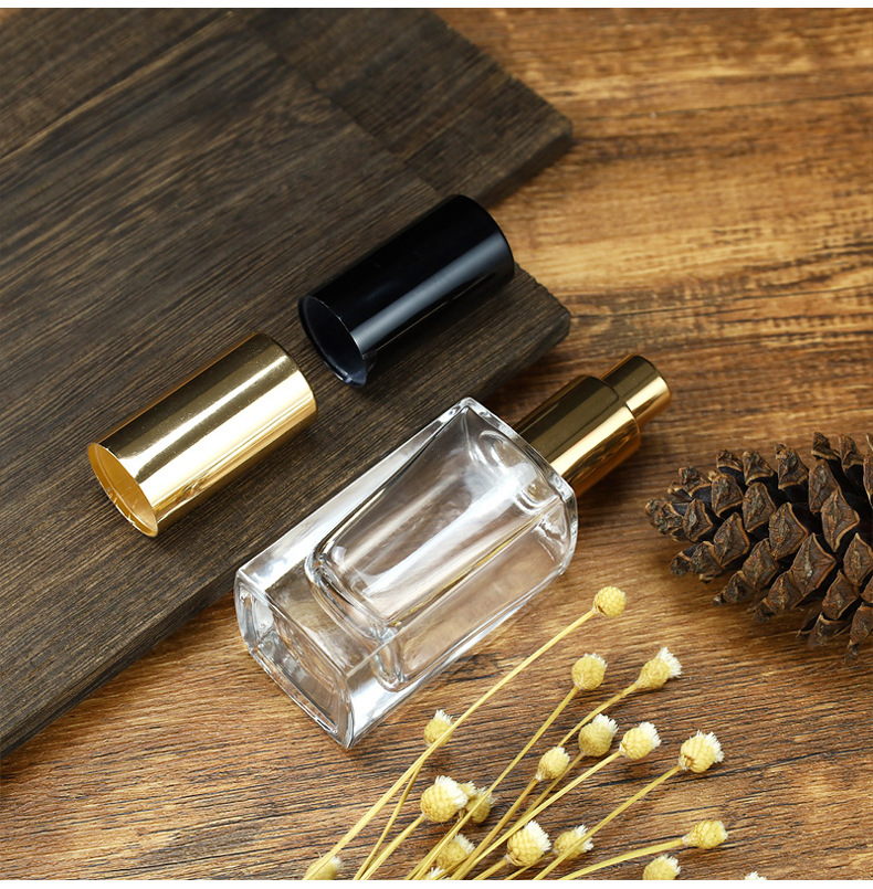 30ml = gold nozzle + gold cover; transparent; glass