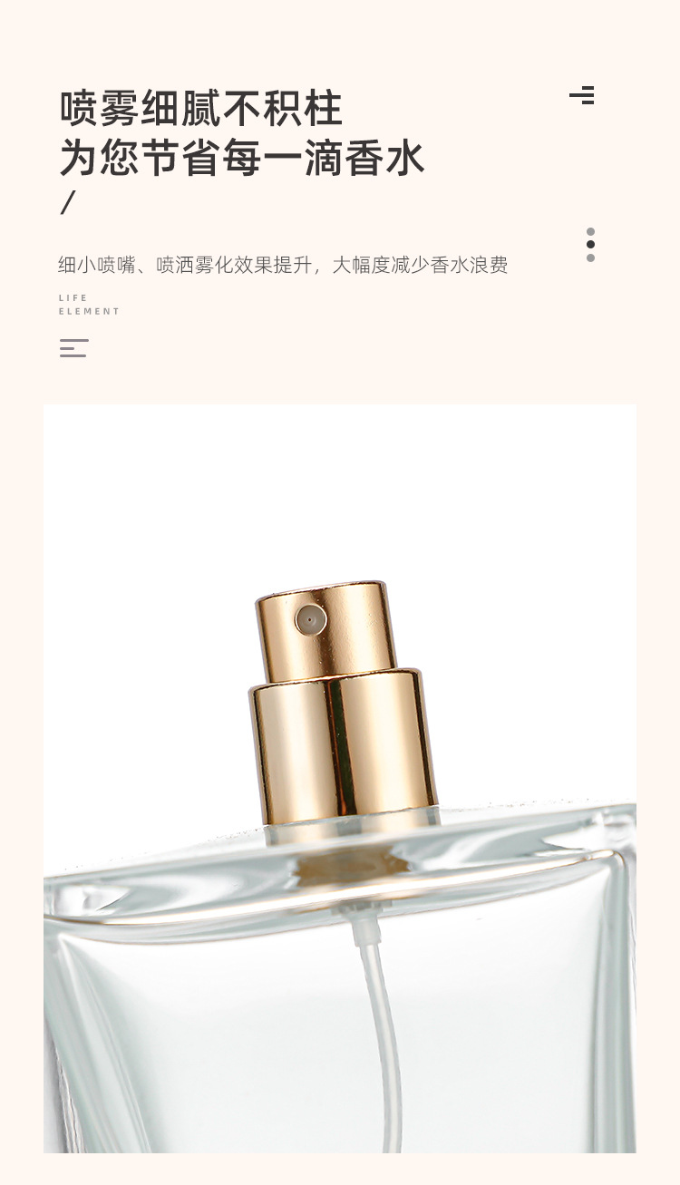 50ml + gold nozzle + inner powder cover; transparent; glass