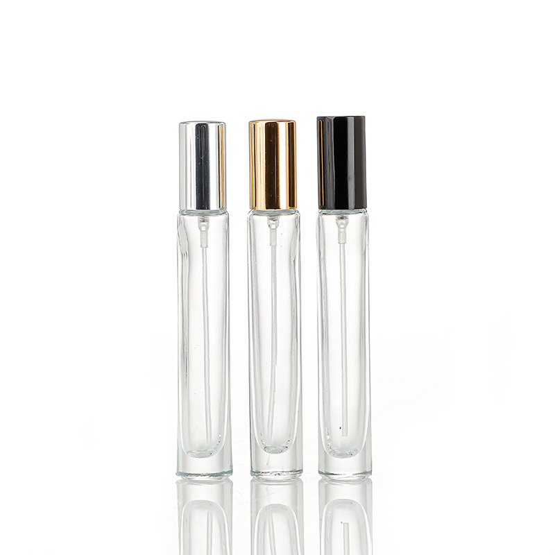 10ml-cylinder bottle + golden cover; transparent; glass