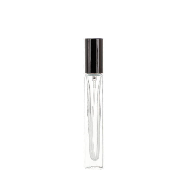 10ml-square bottle + black cover; transparent; glass