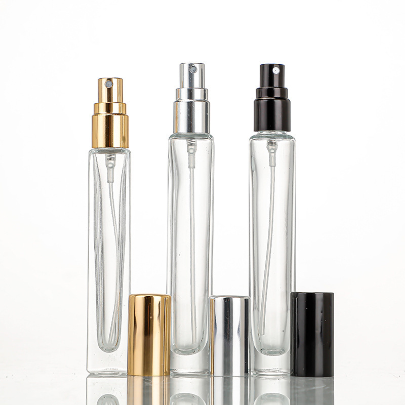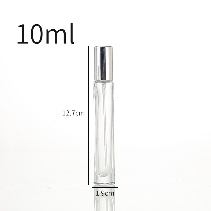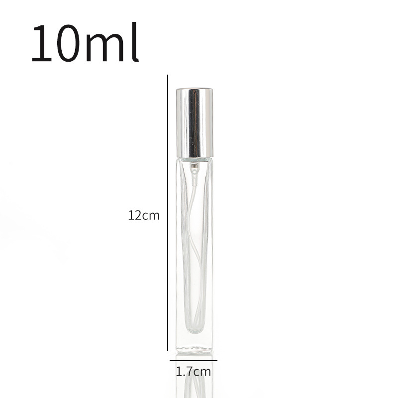 10ml-square bottle + silver cover; transparent; glass