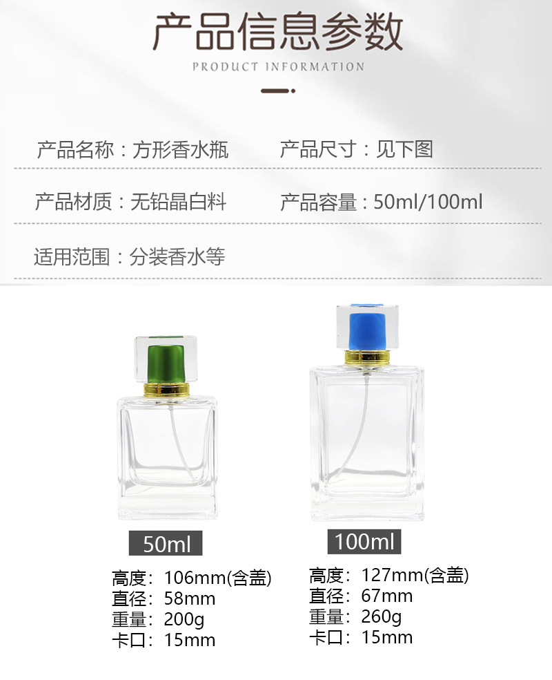 100ml green cover; transparent