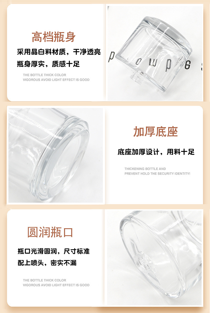 | 50ml + nozzle + double white gold cover; transparent | CN¥ 3.38 | 7777777 piece available |
