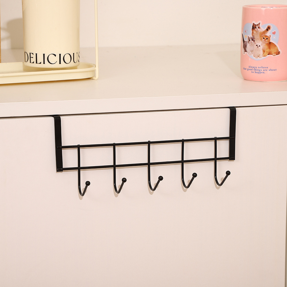 dormitory iron art non-marking 5 hooks punch-free kitchen partition cabinet door storage rack bedroom wardrobe finishing multi hook