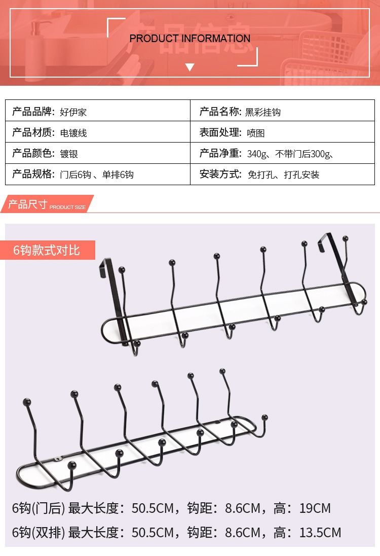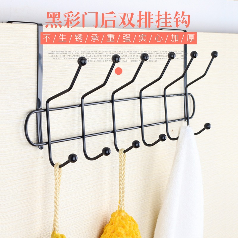 multifunctional double row door rear hook door back type seamless iron 6 hook clothes rack household punch-free double head row hook