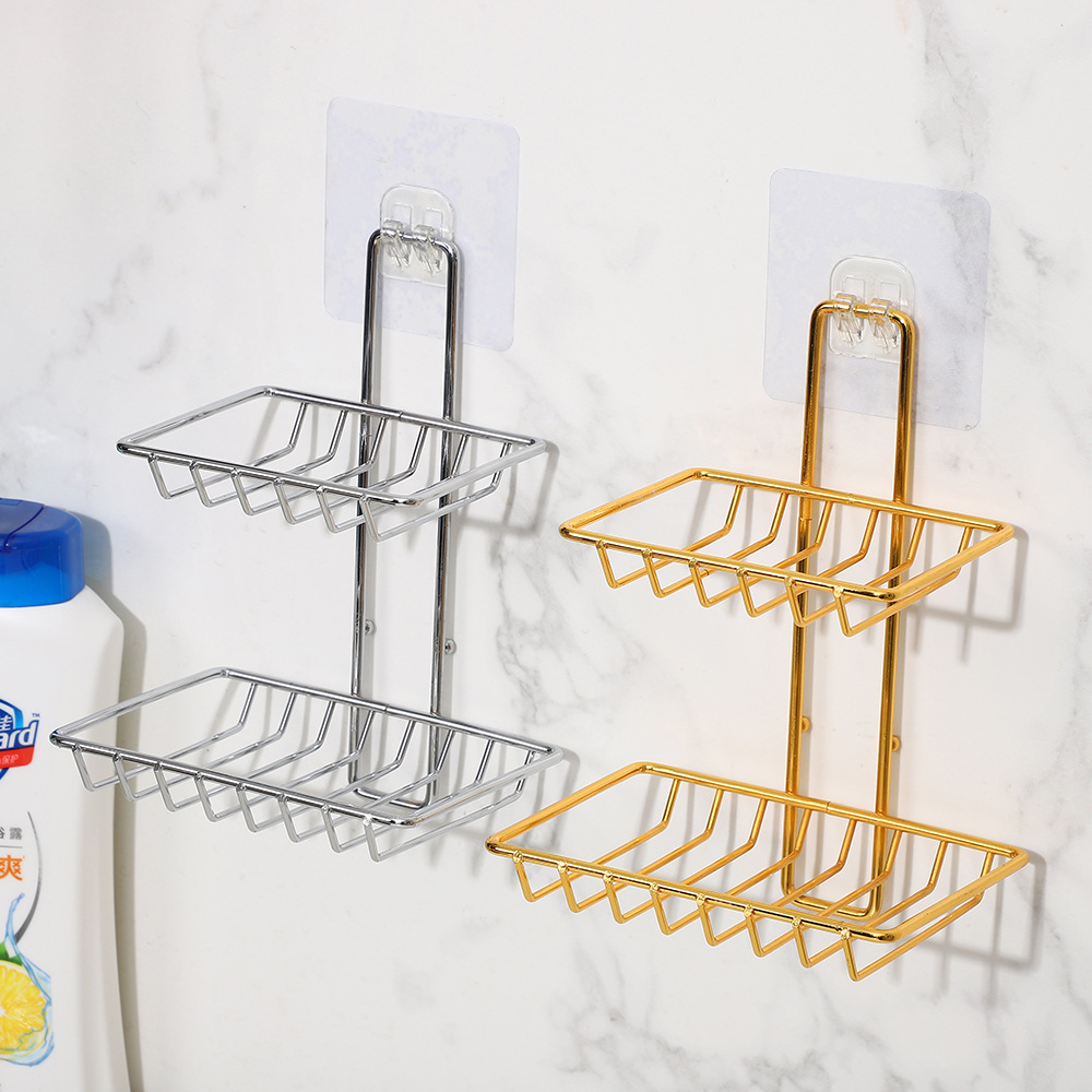 household stainless steel double layers soap holder bathroom punch-free draining rack bathroom toilet hanging soap rack