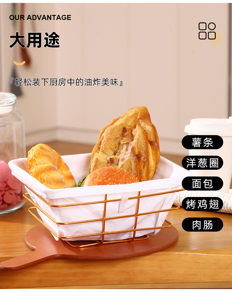 american iron without handle bread basket western restaurant french fries grilled wings snack basket hollow baking pastry storage basket