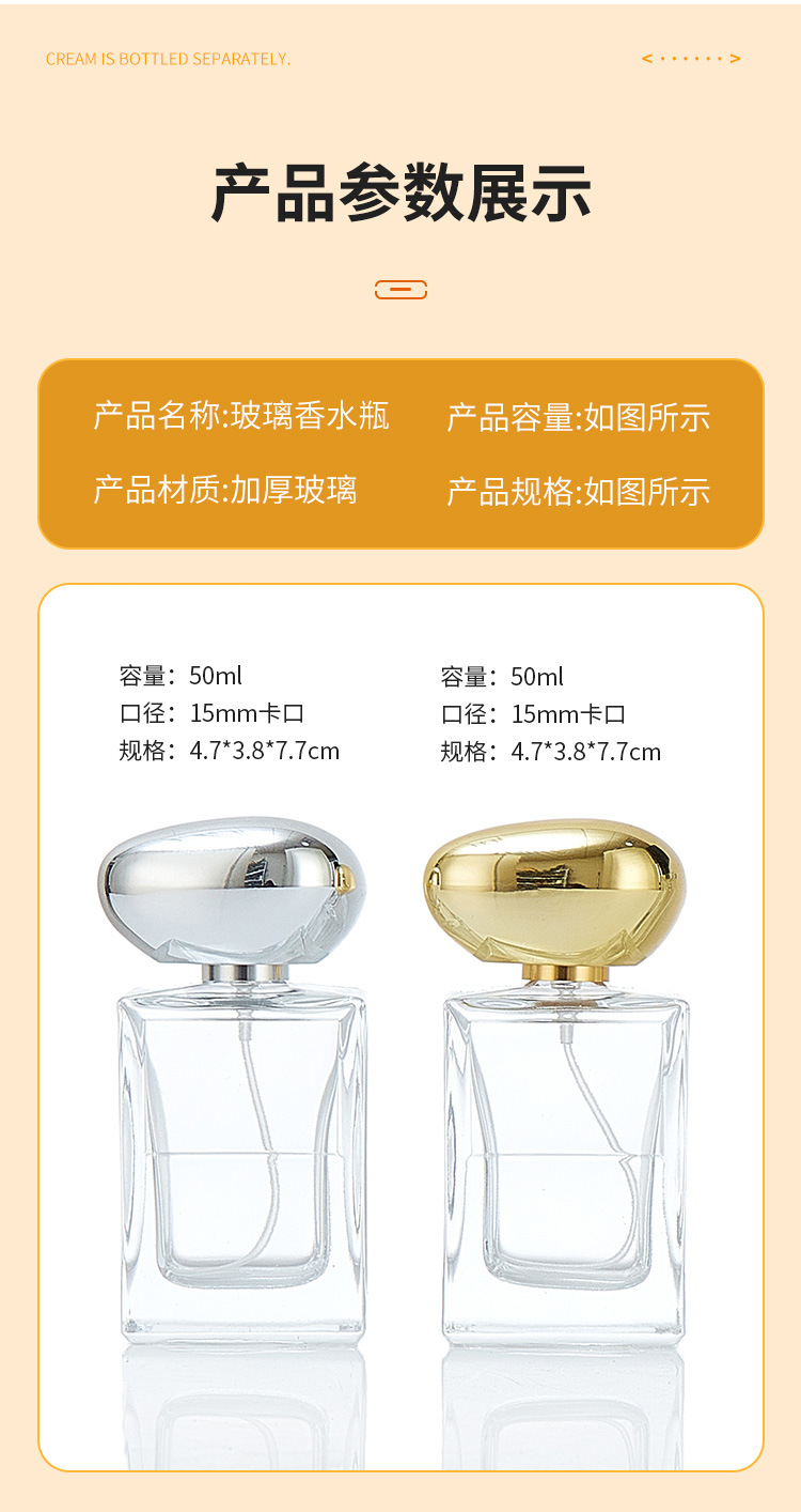 50ml; gold cover; glass
