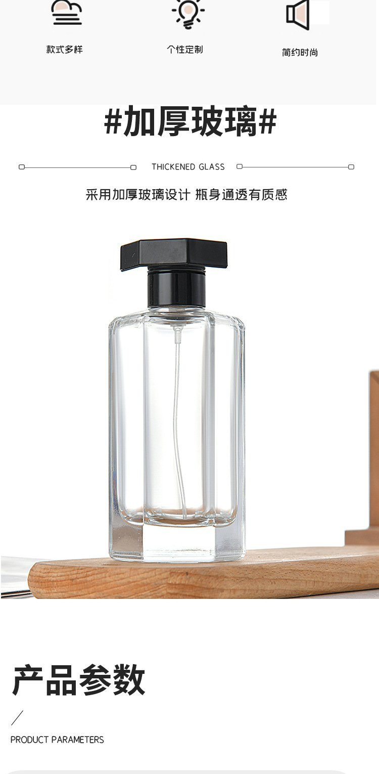 100ml high (seven-corner cover + nozzle); optional-glass