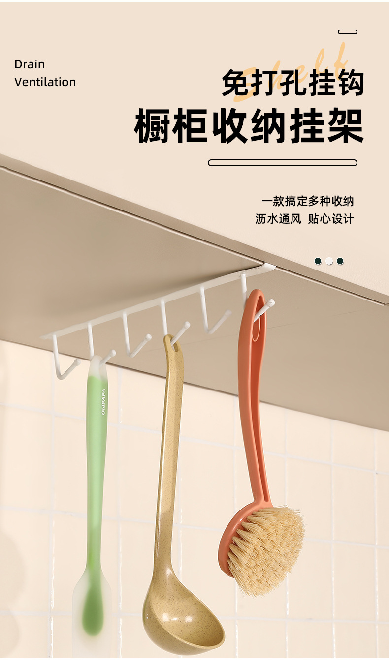 kitchen multi-purpose wrought iron suspension ordinary hook nail-free cabinet storage hanger wardrobe row hook behind the door organizing rack