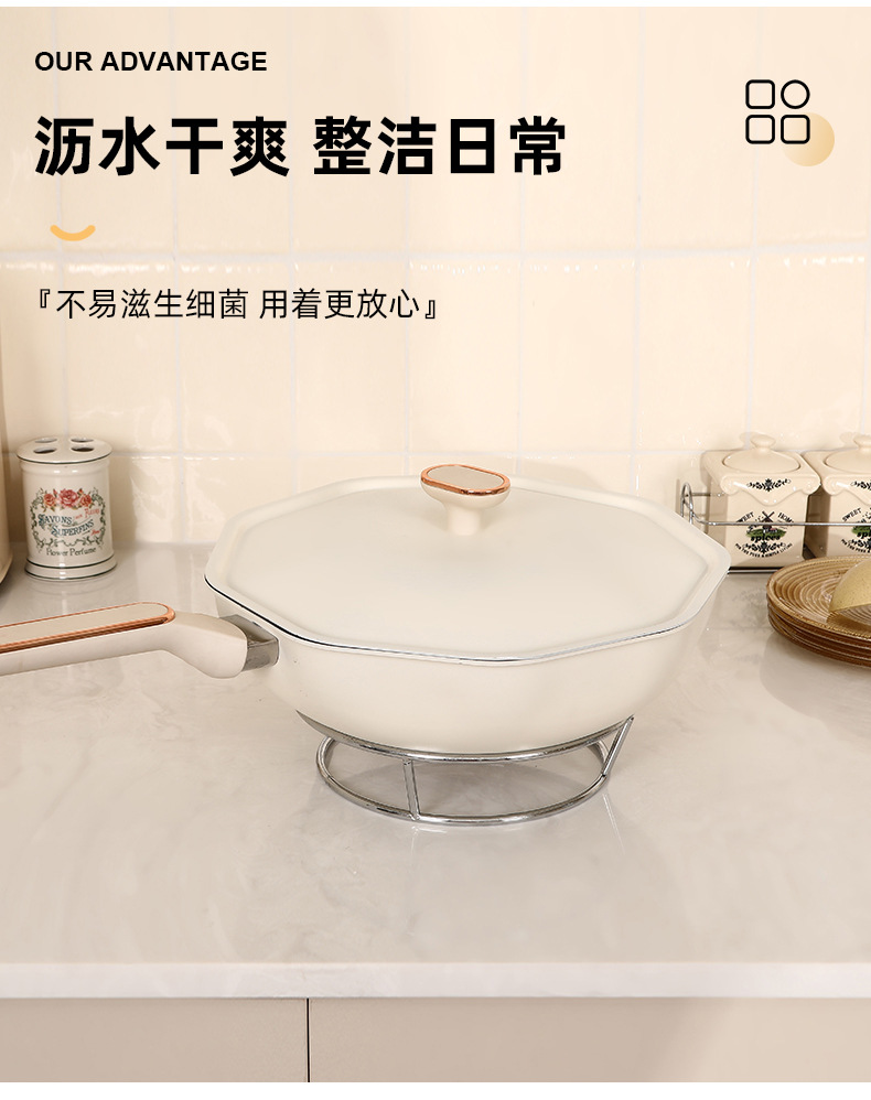 stainless steel metal kitchen wok stand anti-scald pot rack storage rack minimalist dual-use heat insulation organizing pot rack