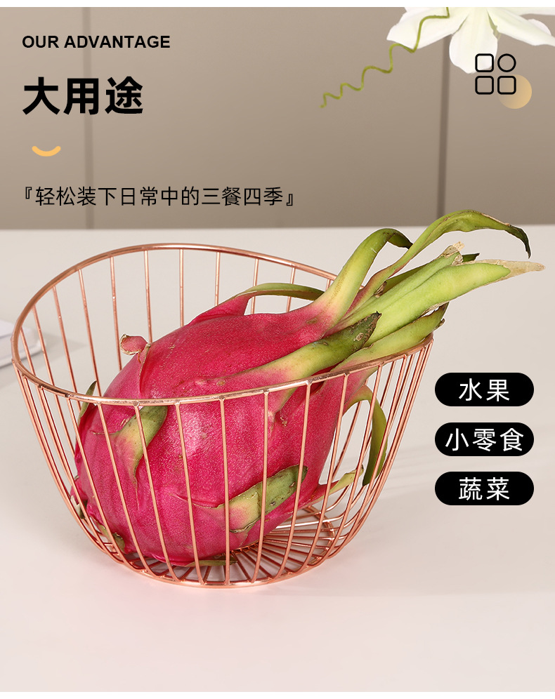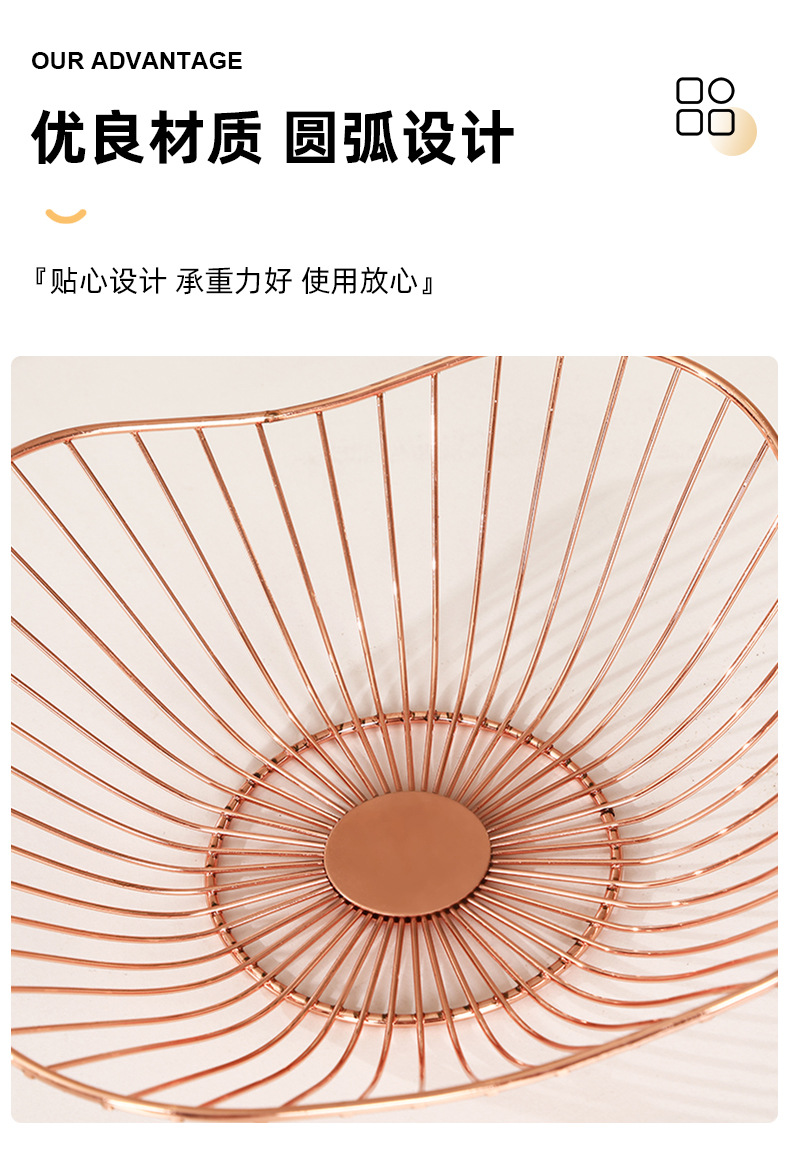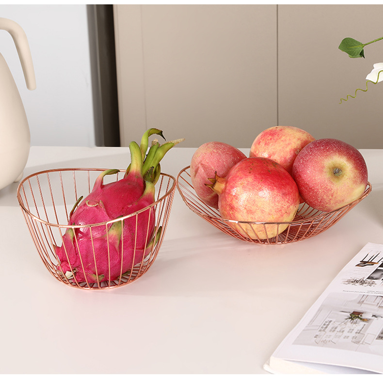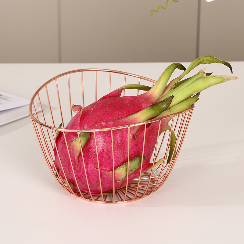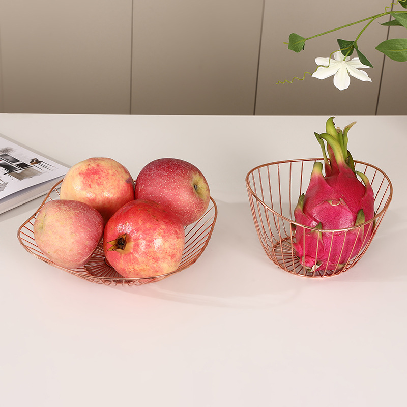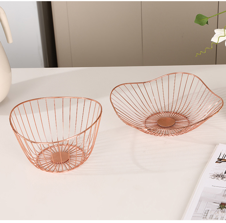 rose gold metal electroplating wrought iron modern creative fruit basket irregular snack fruit and vegetable draining storage basket