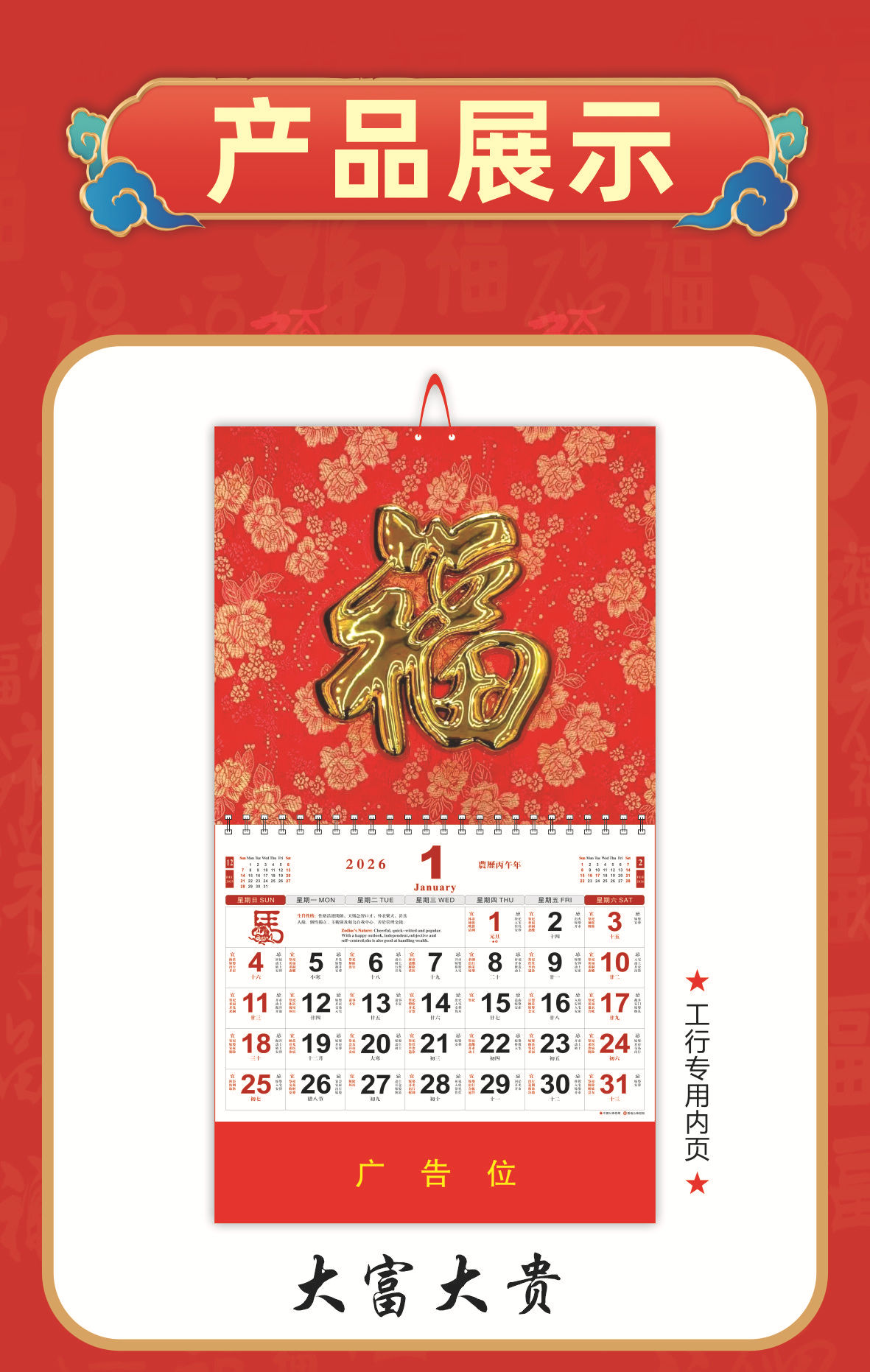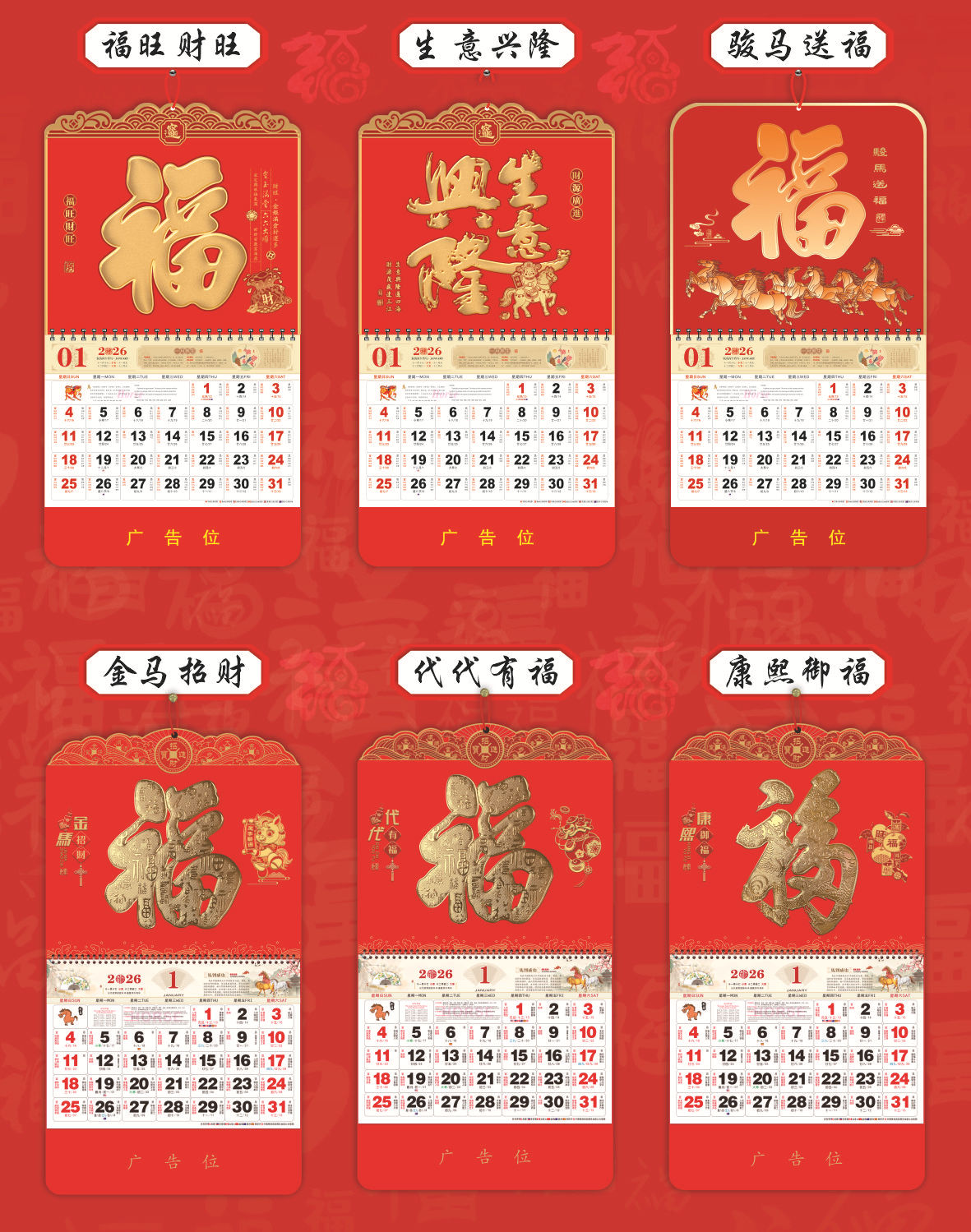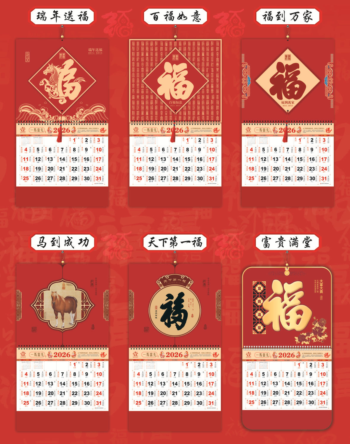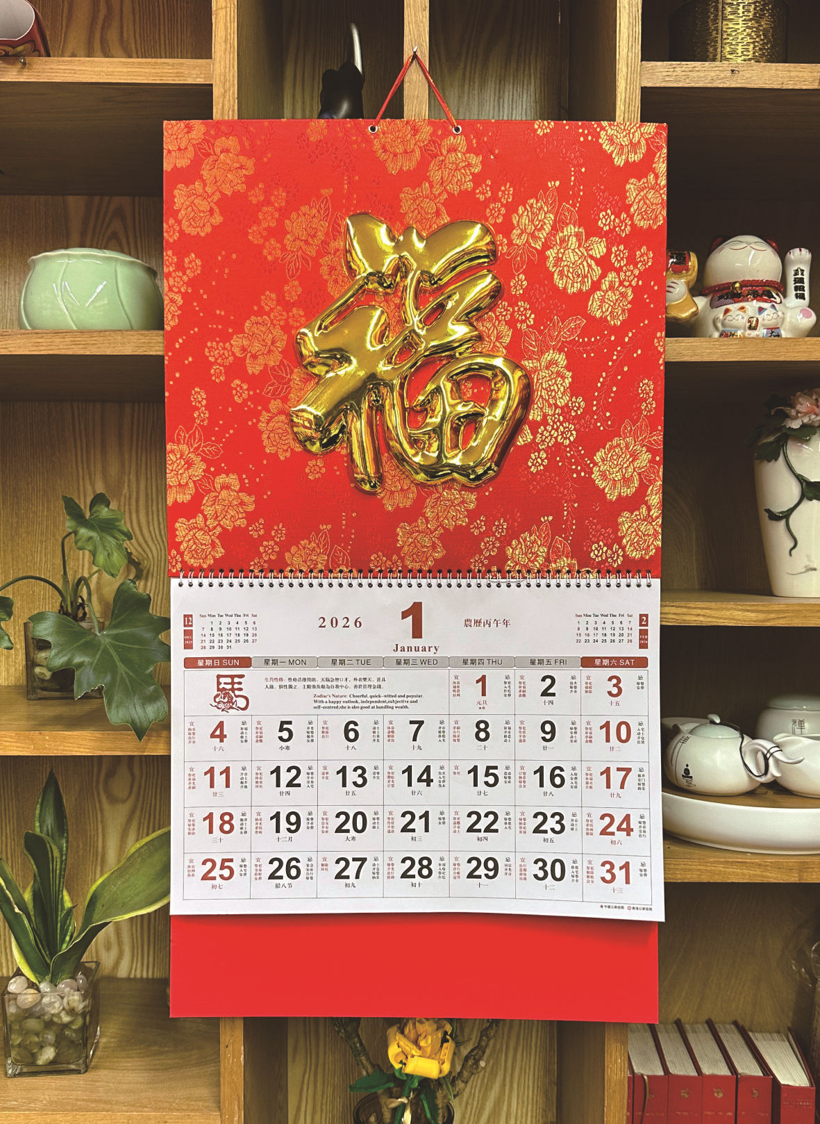 chinese red calendar 2026-golden horse fortune 17401