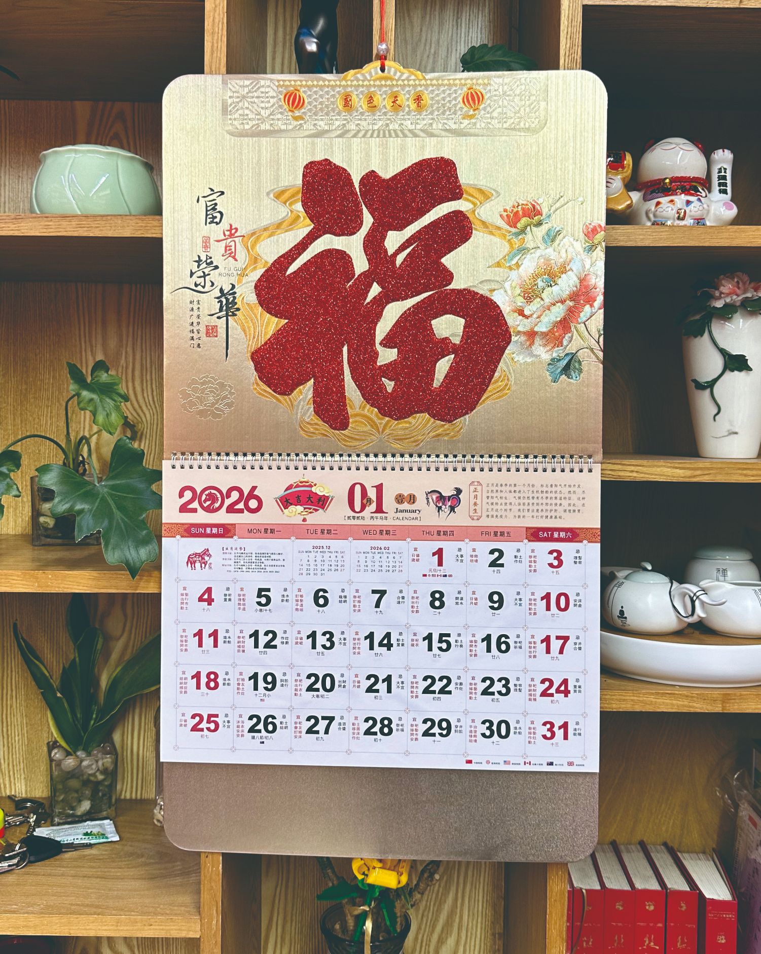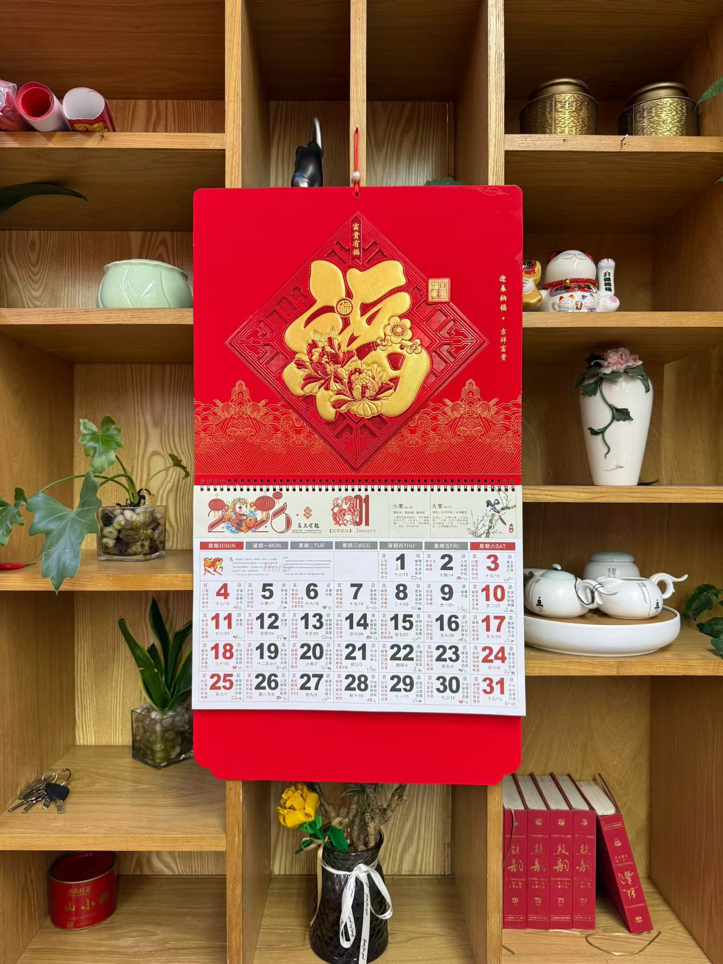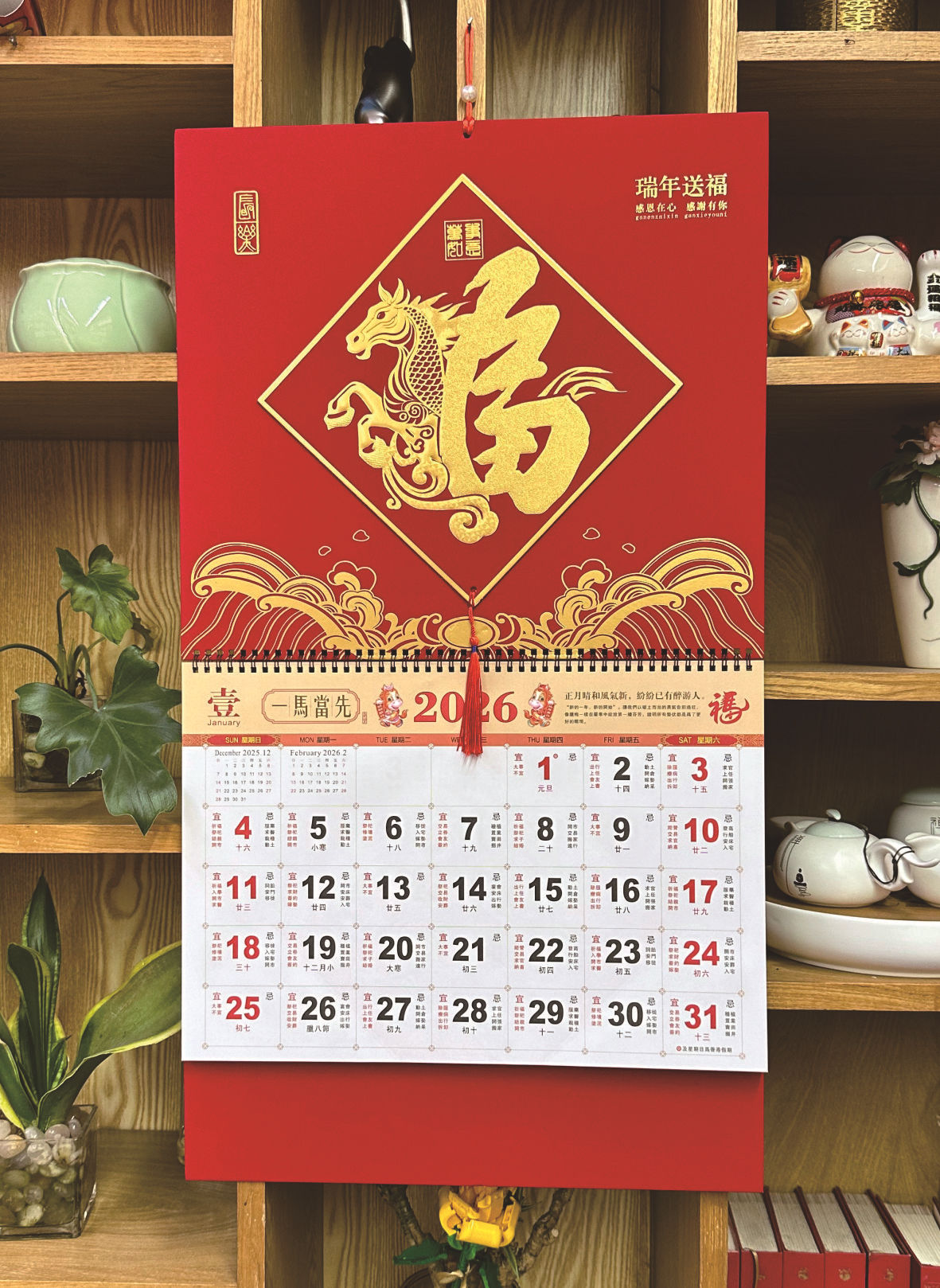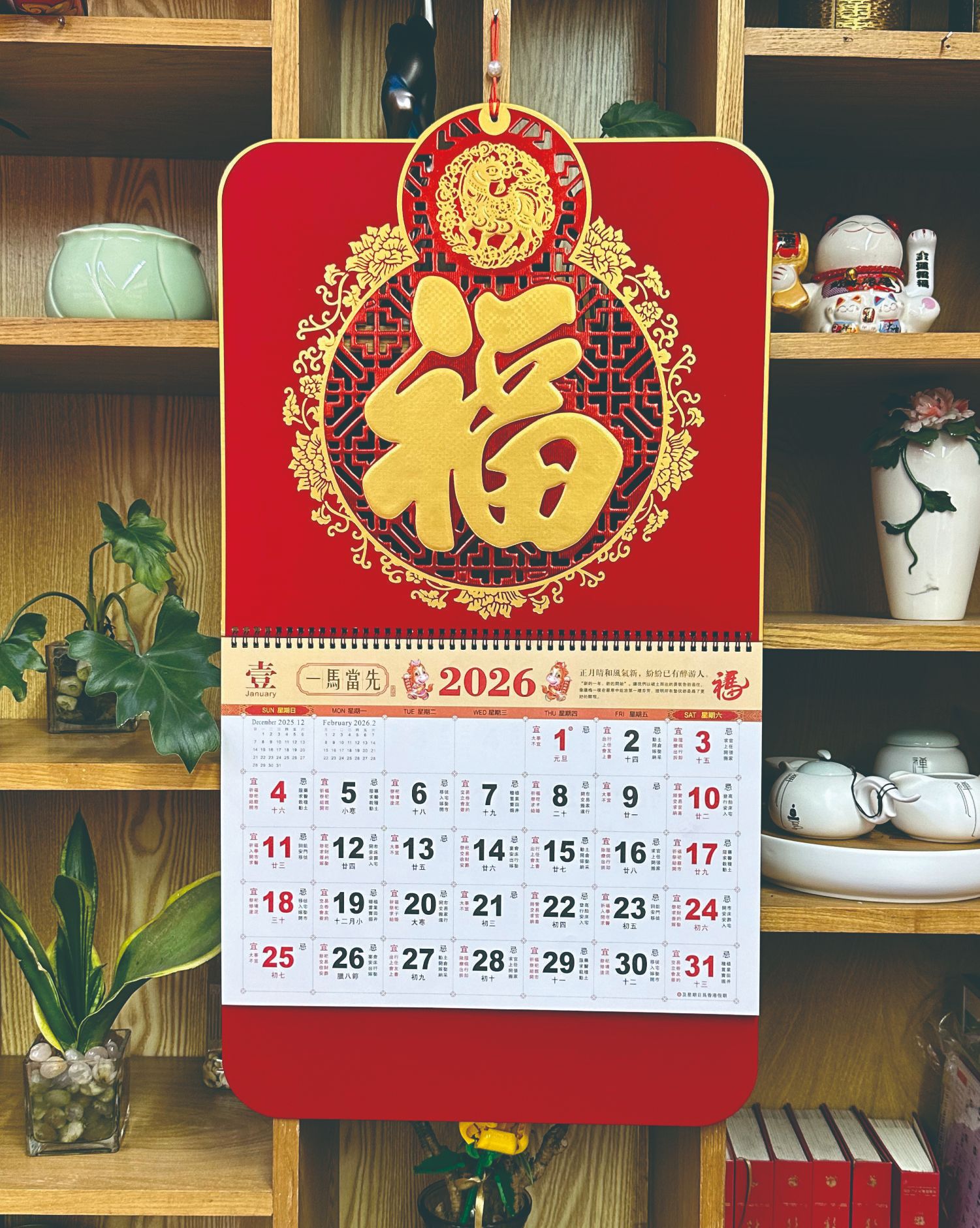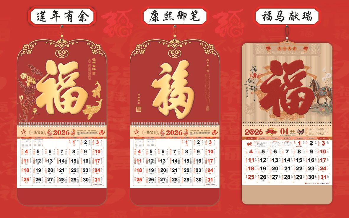 2026 super thick chinese red diamond wall calendar-golden horse sending blessing 017