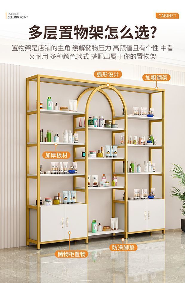 multifunctional live streaming background display cabinet cosmetics display stand light luxury shelf nail beauty salon product cabinet showcase