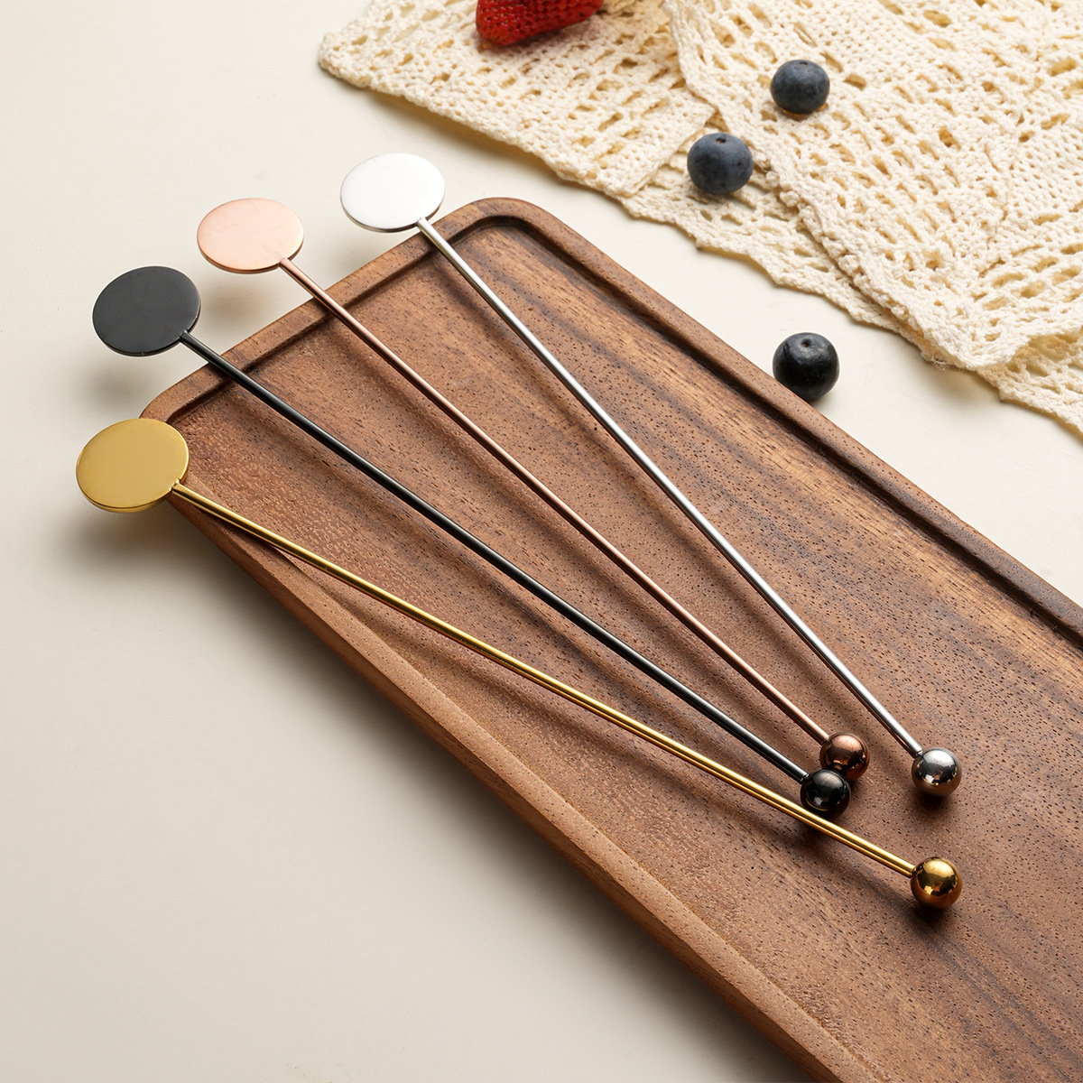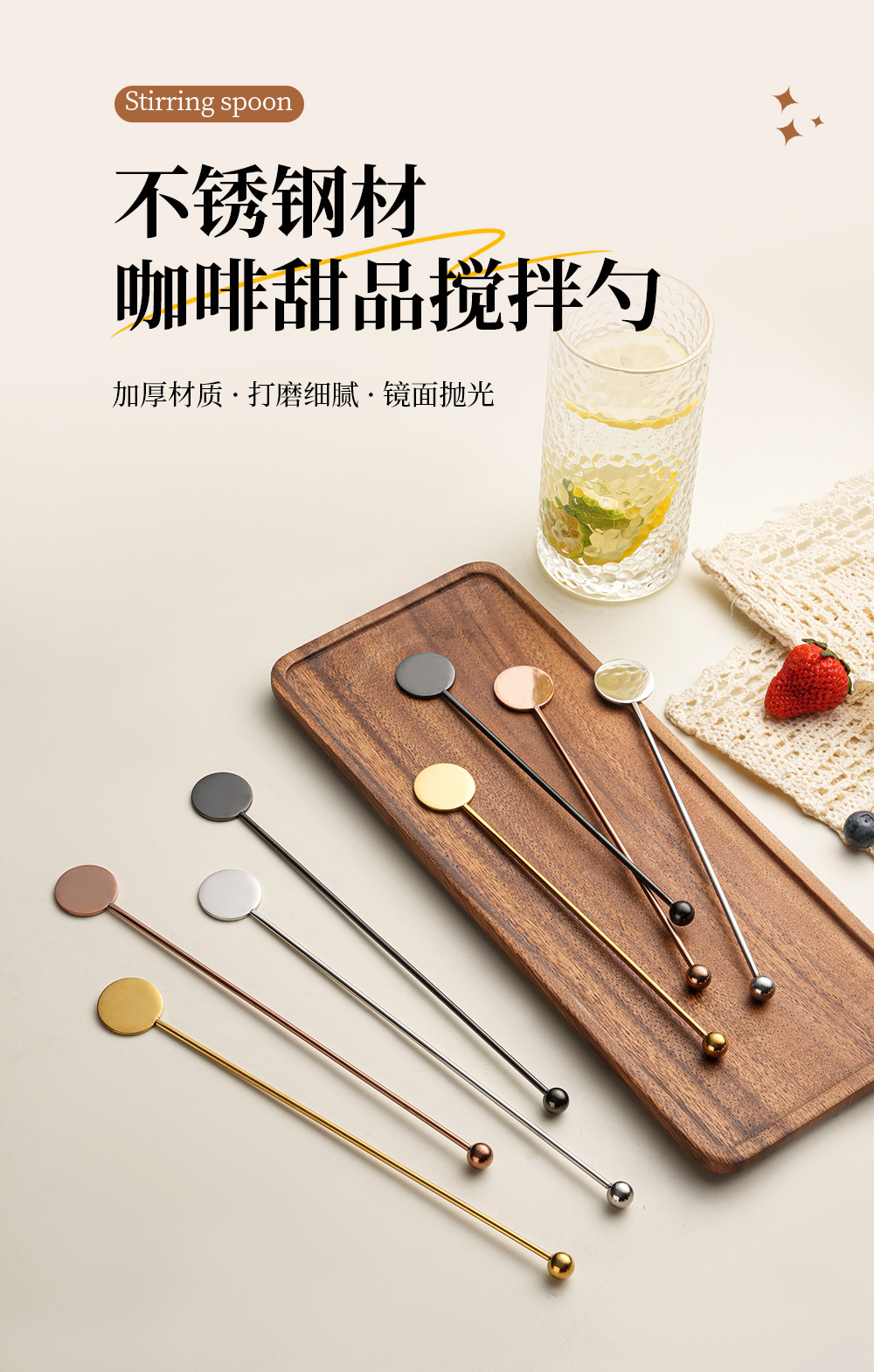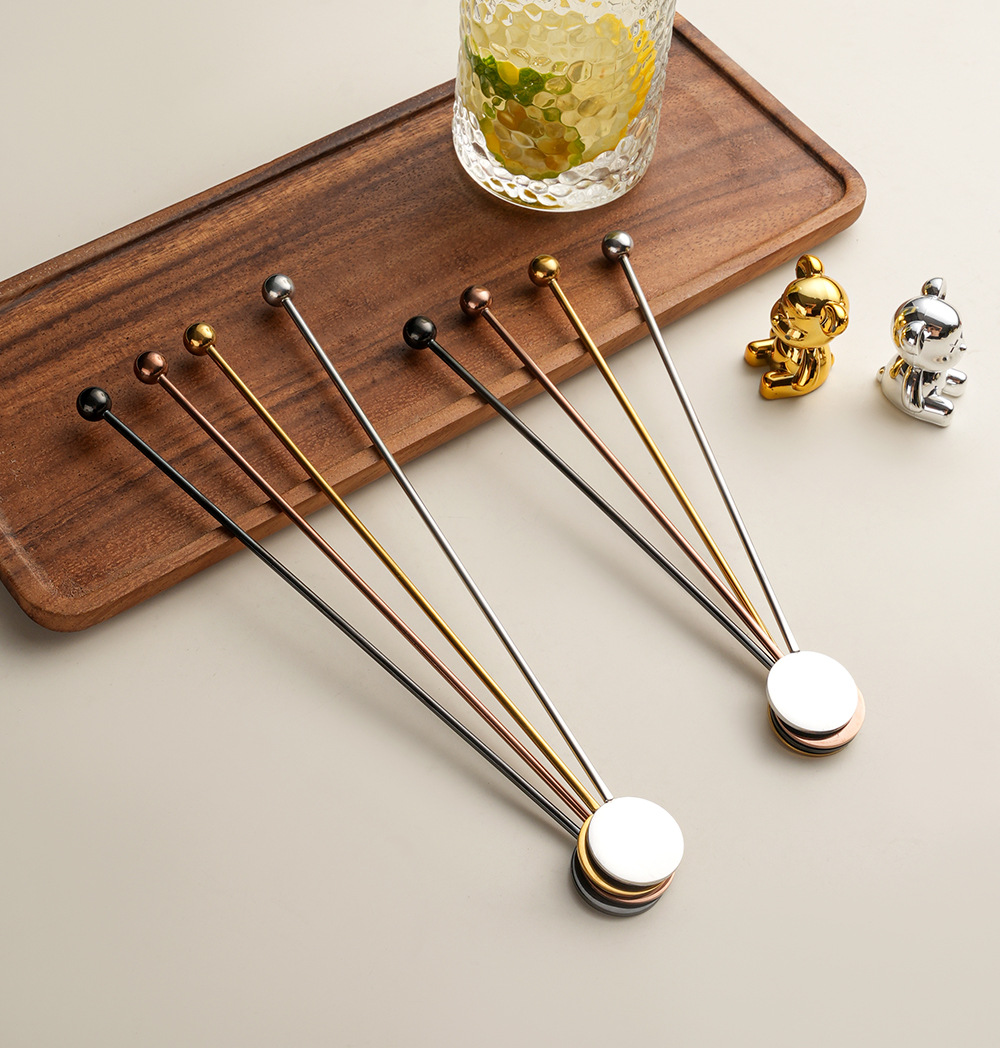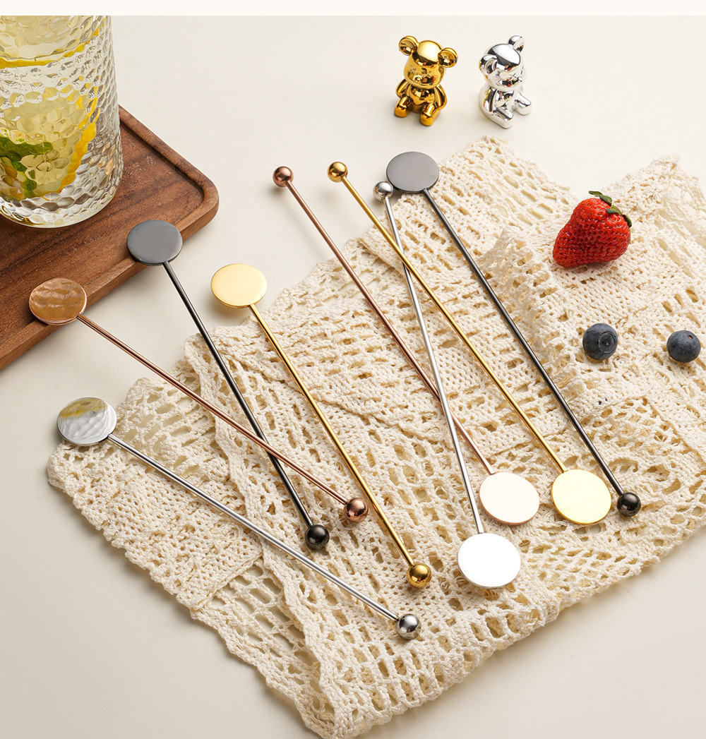 304 stainless steel stirring rod long handle round brand stirrer coffee milk tea honey spoon cross-border bead head spherical stir stick
