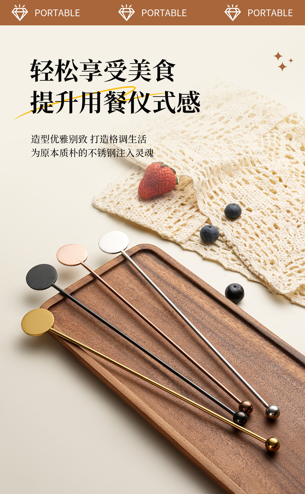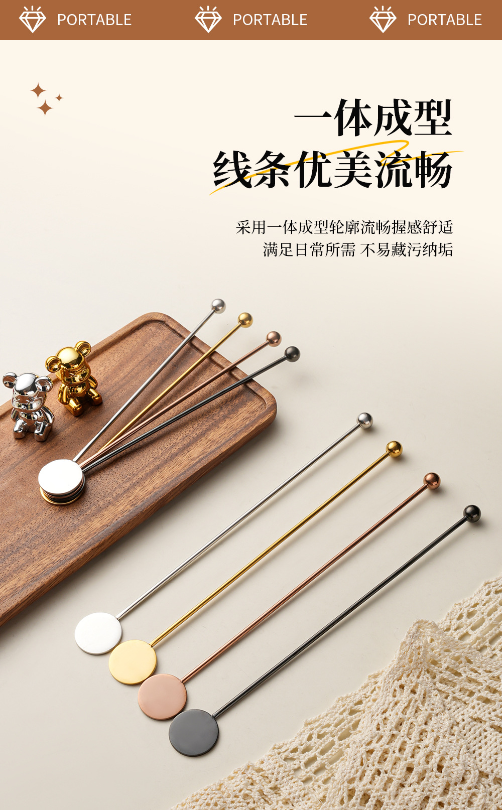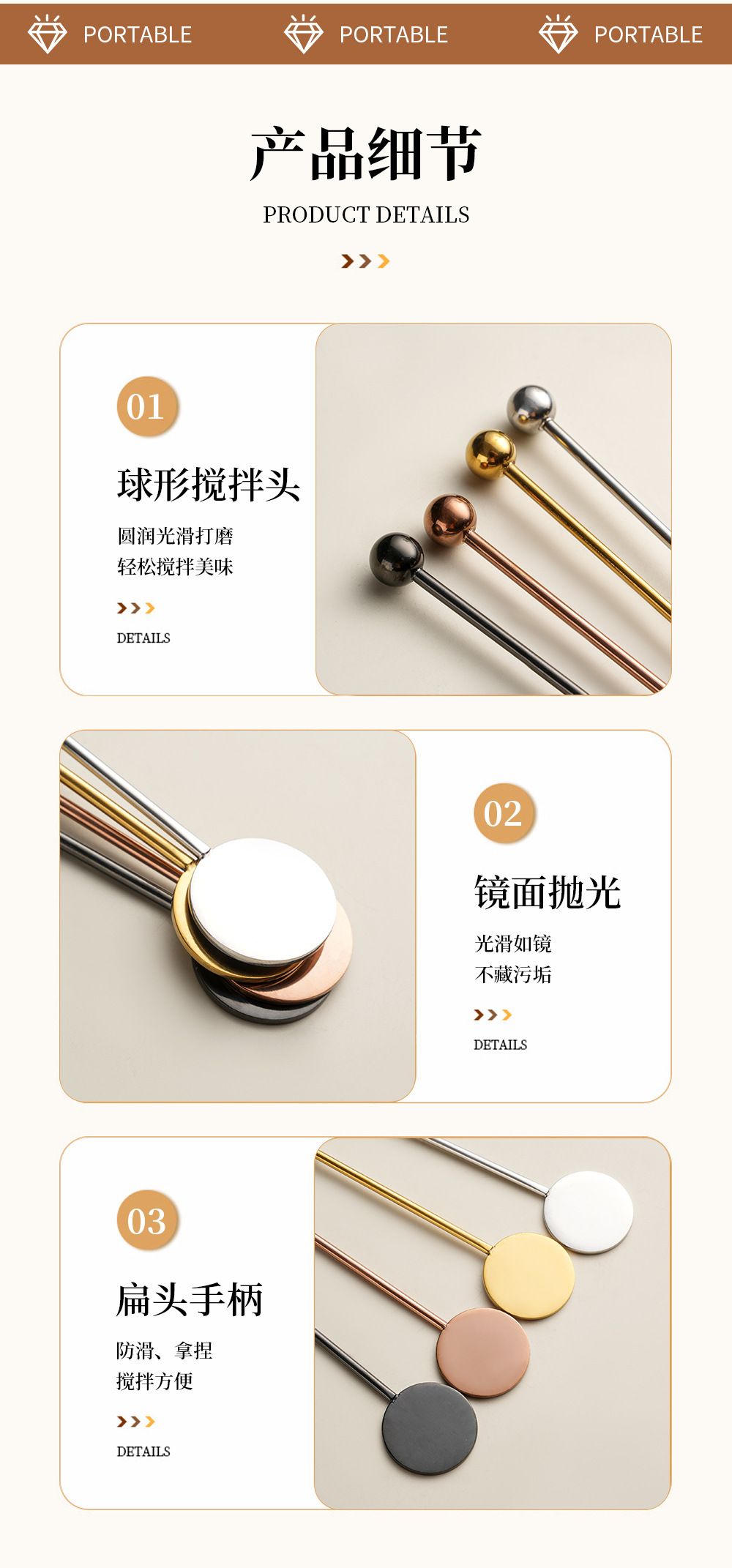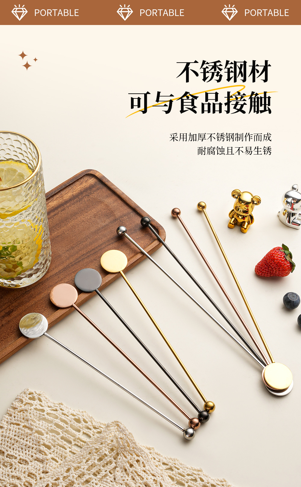 304 stainless steel stirring rod long handle round brand stirrer coffee milk tea honey spoon cross-border bead head spherical stir stick