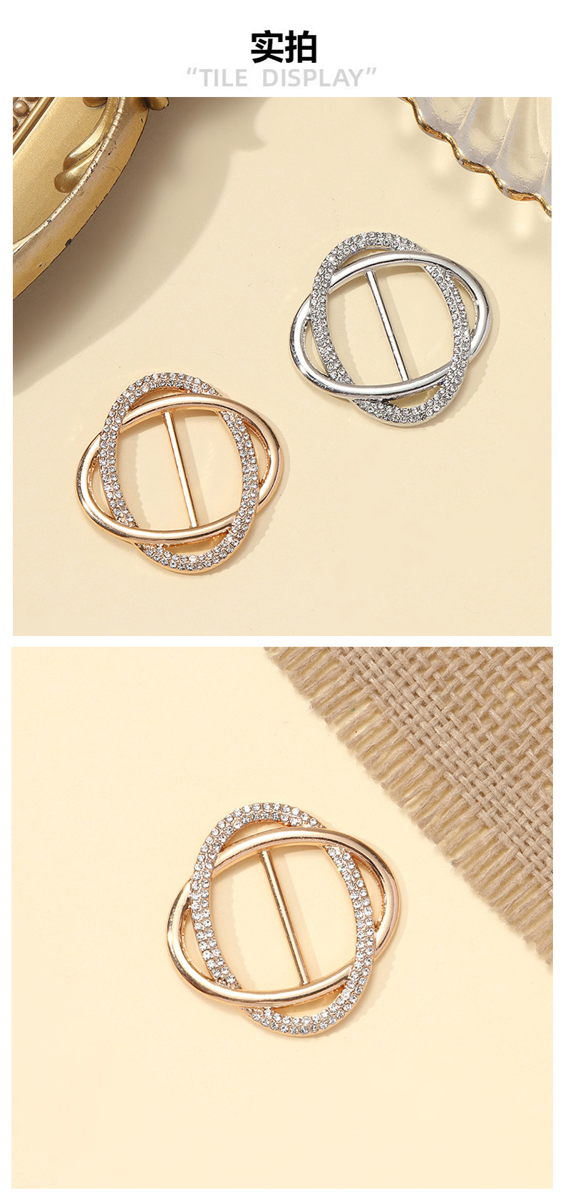 double ring diamond japanese buckle gold