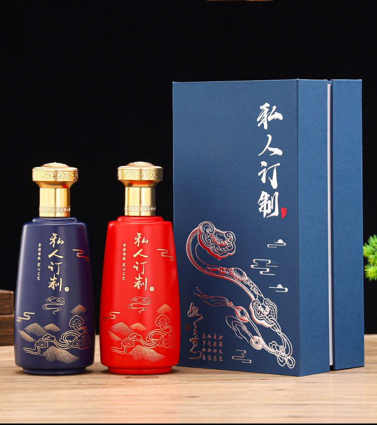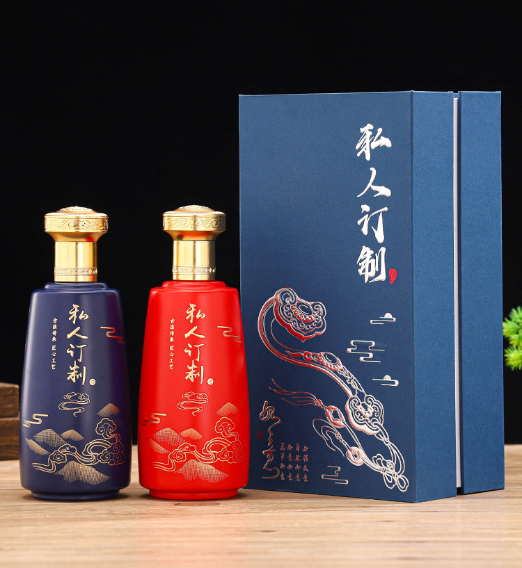 500ml blue ruyi wine bottle * 2 + book box * 2 + handbag * 1; customized color