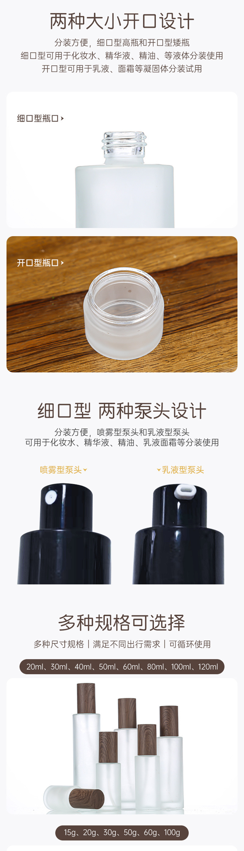 100g cream bottle; black wood texture cover; glass