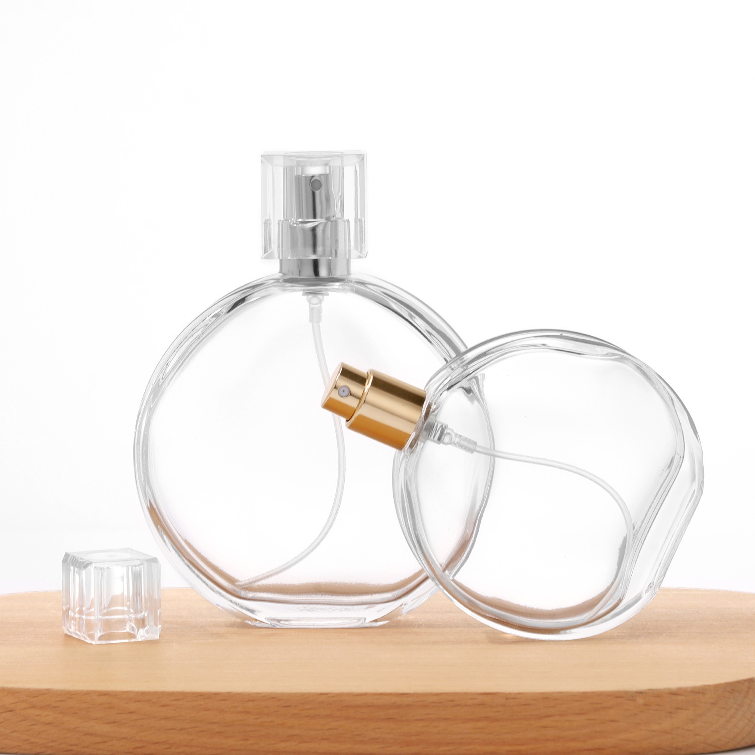 50ml glass bottle + nozzle + lid; transparent; glass