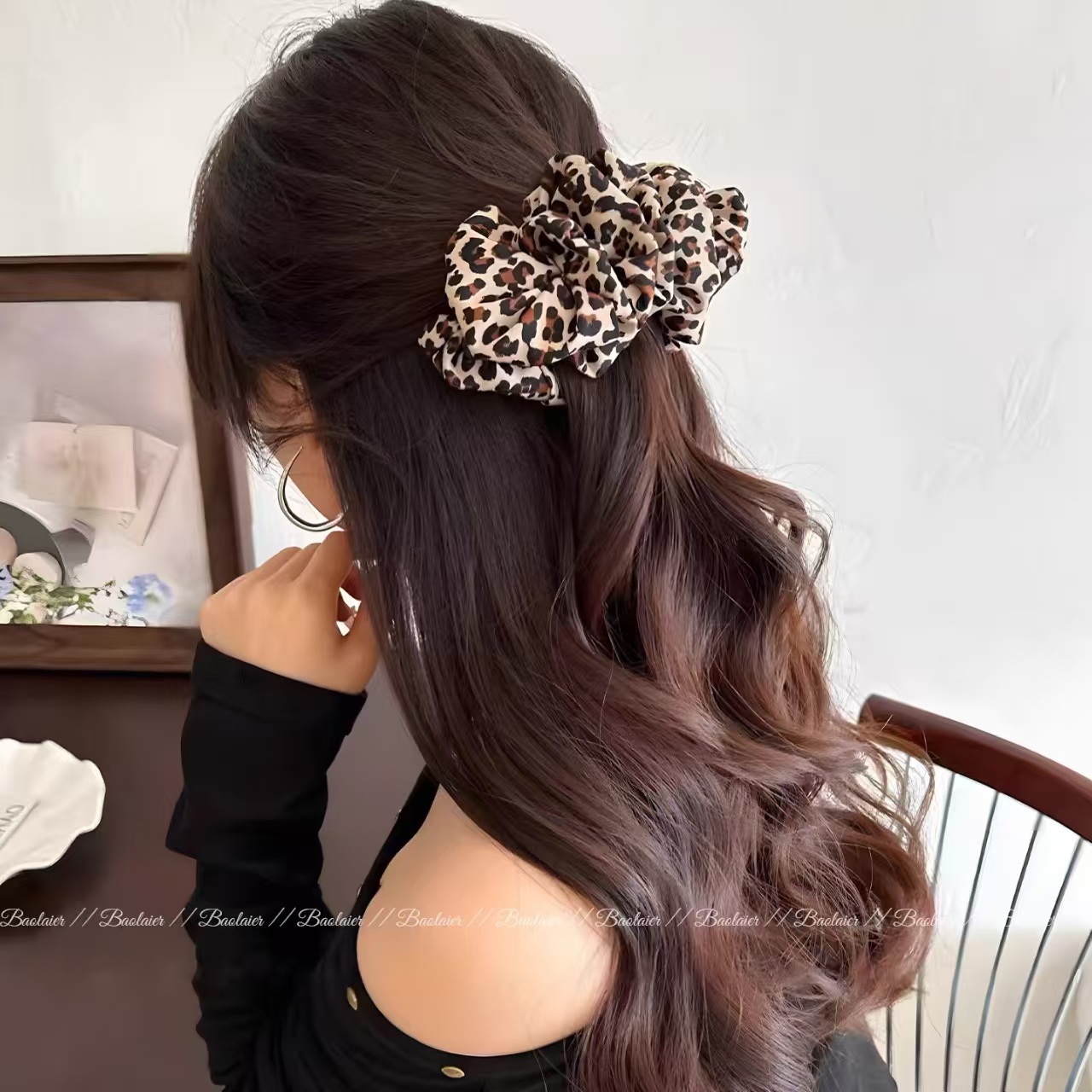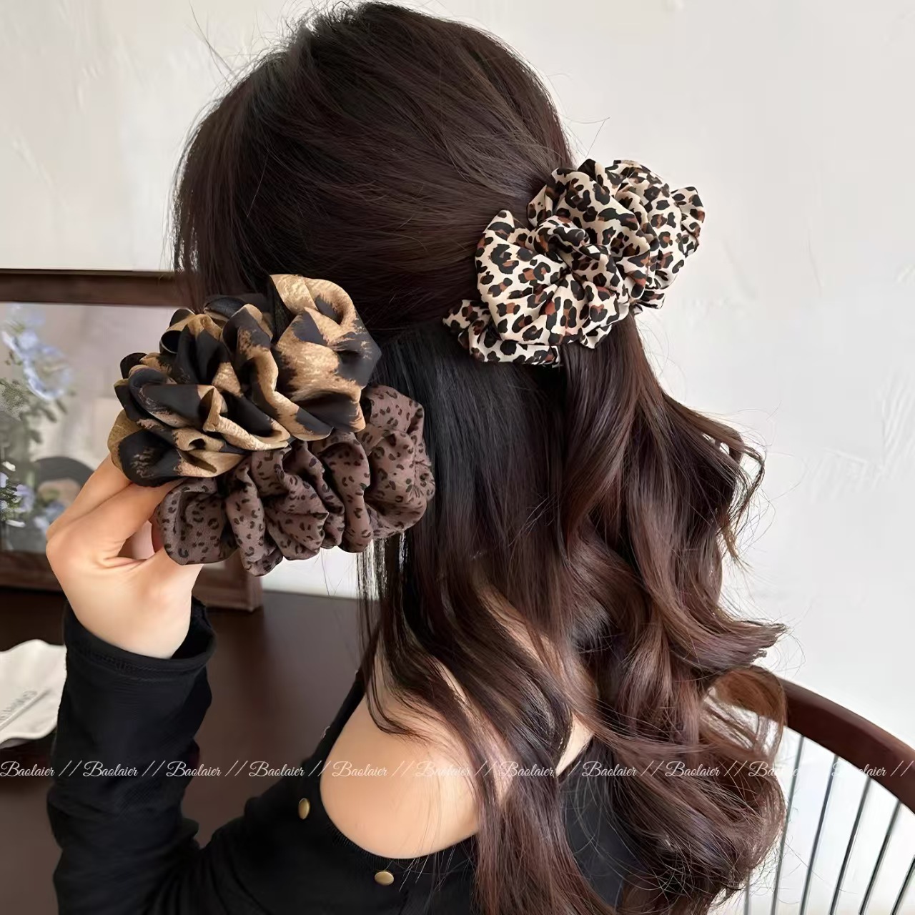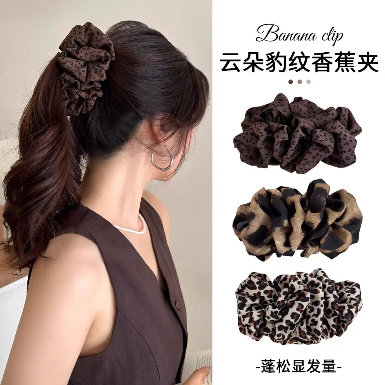 dark coffee leopard print-banana clip