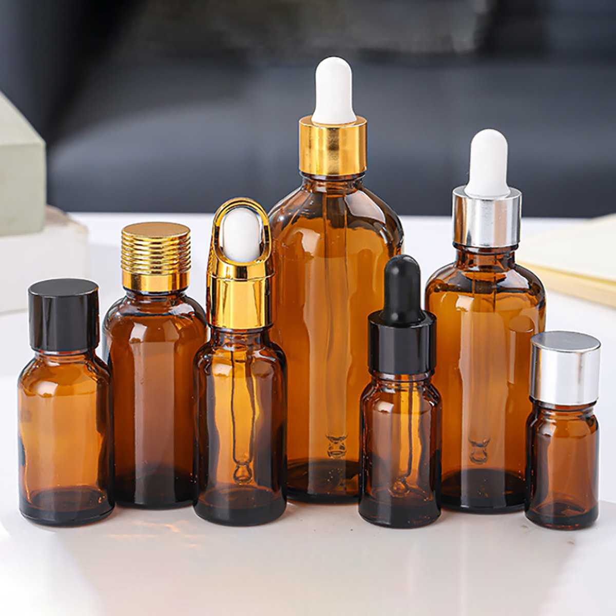 matte white circle + white glue head dropper + brown bottle; glass; 5ml