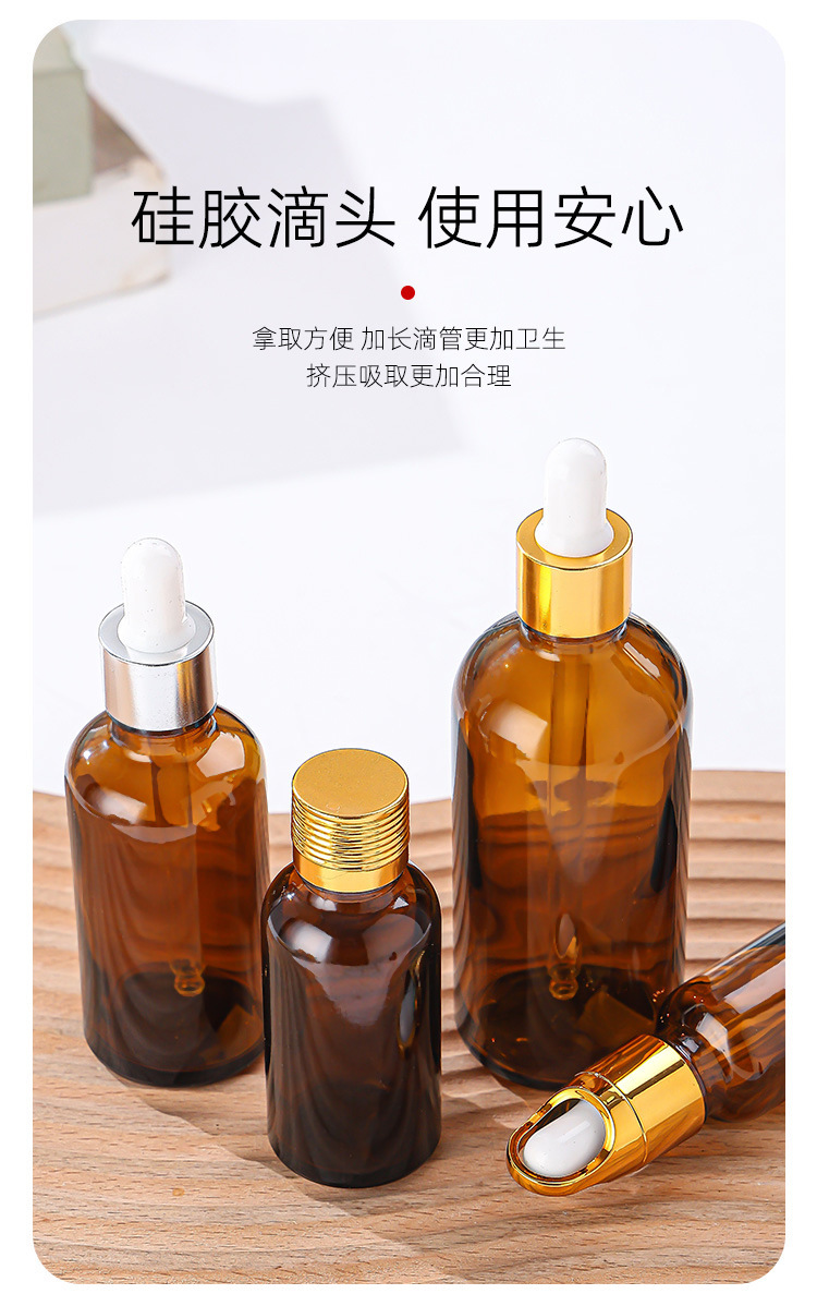 golden flower basket + white glue head dropper + brown bottle; glass; 100ml