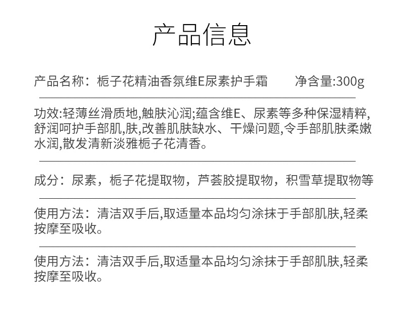 zhiyang gardenia vitamin e urea hand cream 300g