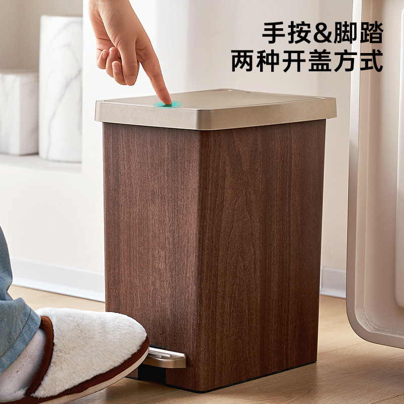 with feet wood grain trash can-with cover