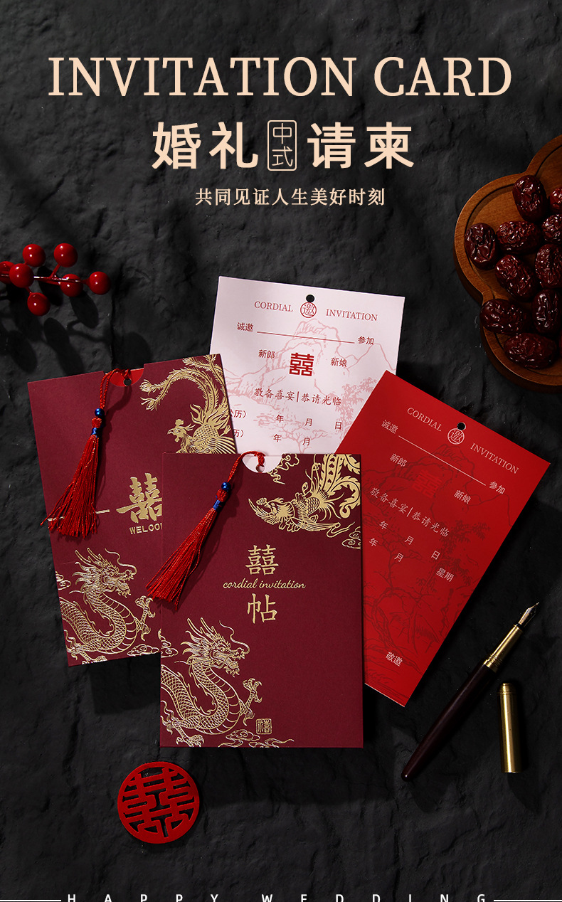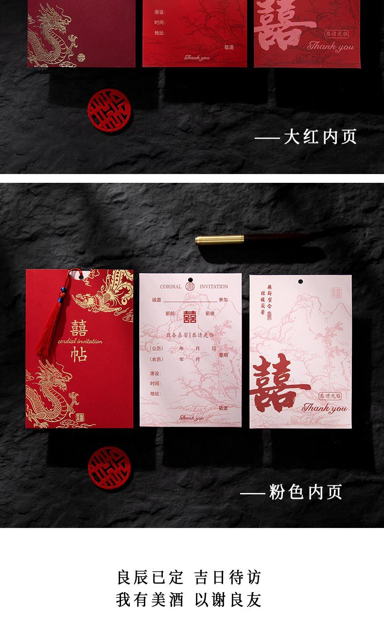 red wedding stickers + red inner page + handwriting version